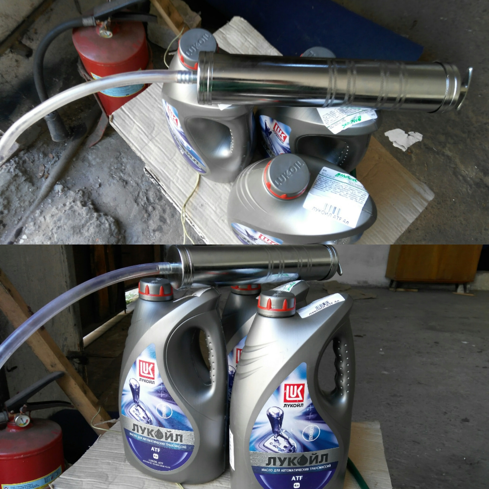 Процедуру слива и залива я описывал в предыдущей записи. Сливаем от 1,5-3 литров, глушим мотор и добавляем свежего масла в поддон. Повторяем пока не потечет чистое и свежее. У меня это произошло где то на 9-10 литре. НО тк я брал 12л масла, я еще слил порядка 2 л! В итоге в акпп я залил 11,5л масла, Минус конечно разлитое с пробки акпп и шприца (может 100-200мл) Так оно и будет ведь я слил чистого лишнего около 2л, а в акпп нужно 9,5л. Осталось чистого 0,5л в банке.
