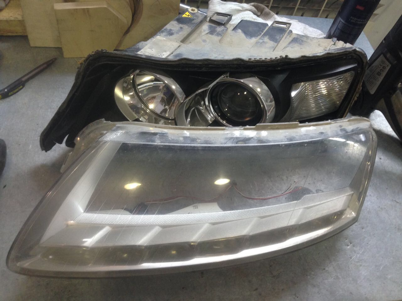 Далее обратился к Лехе, из нашего Ауди-клуба www.instagram.com/alt96ekb/, он занимается ремонтом покраской и восстановлением фар, с просьбой отреставрировать линзы, полирнуть стекла, покрасить маски, собрать левую фару из двух, да и еще заставить наконец-то работать светодиодные полоски… Они у меня никогда раньше не горели.