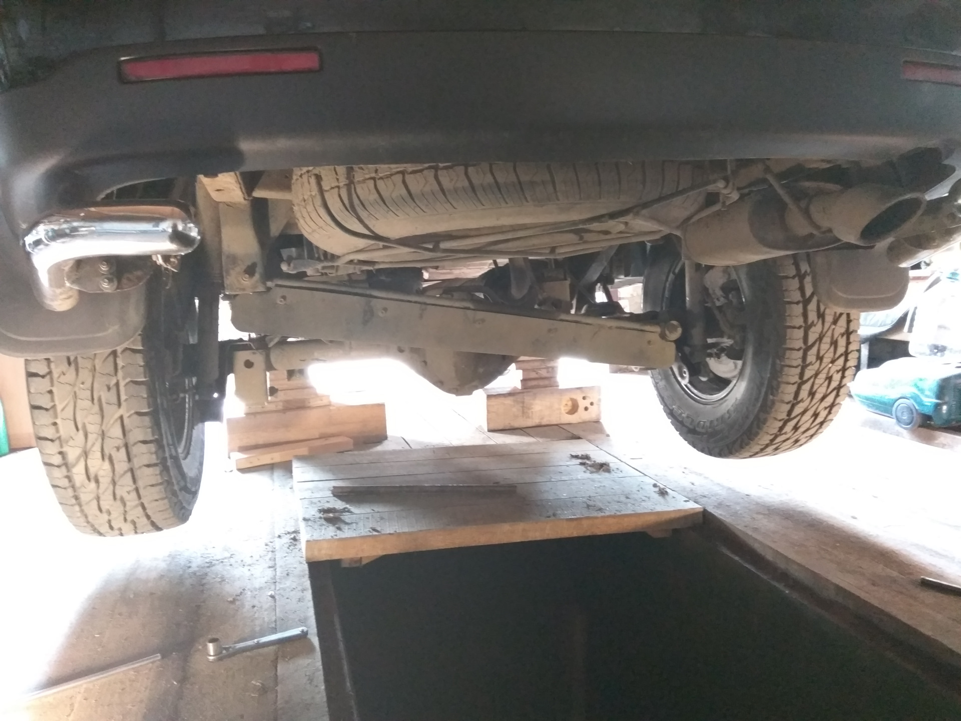 Описывать процесс не вижу смысла. Но немного опишу хронологию. Заехал на яму, поддомкратил машину, поставил на бруски, вывесил зад.