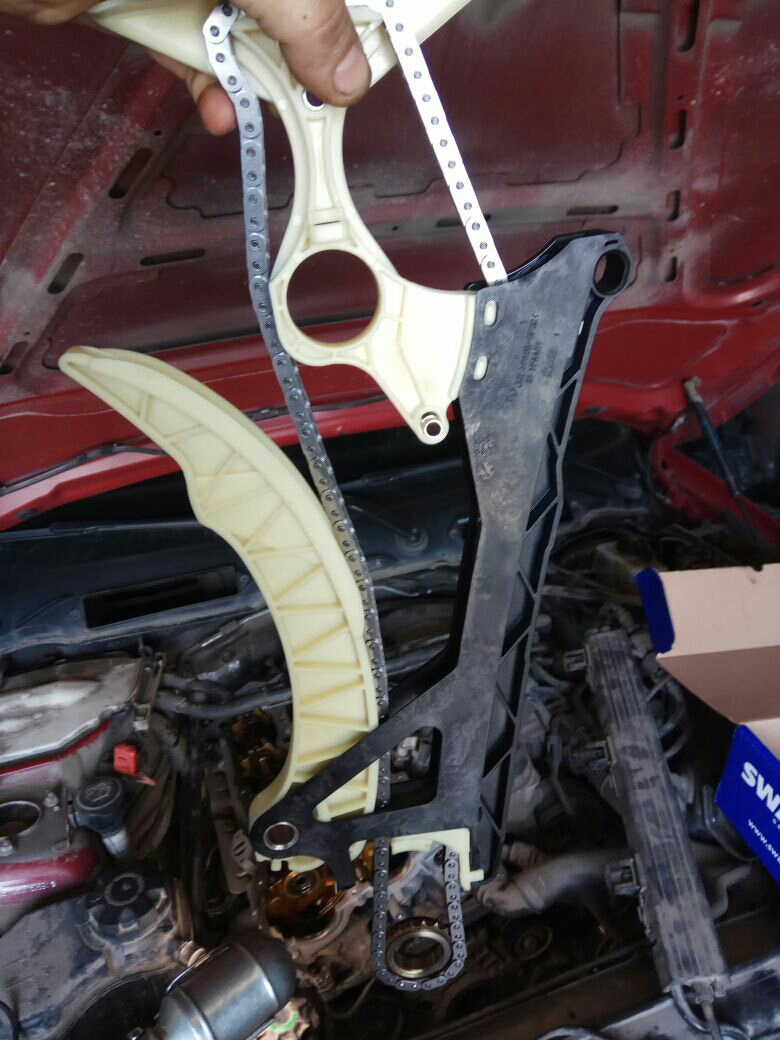 Мастер сказал что цепь была растянута и ещё бы пару тысяч км и могло бы к капилки привести, цепь разбивает пластиковые элементы и попадают они в поддон, а потом в масленые каналы и ппц движжу(((