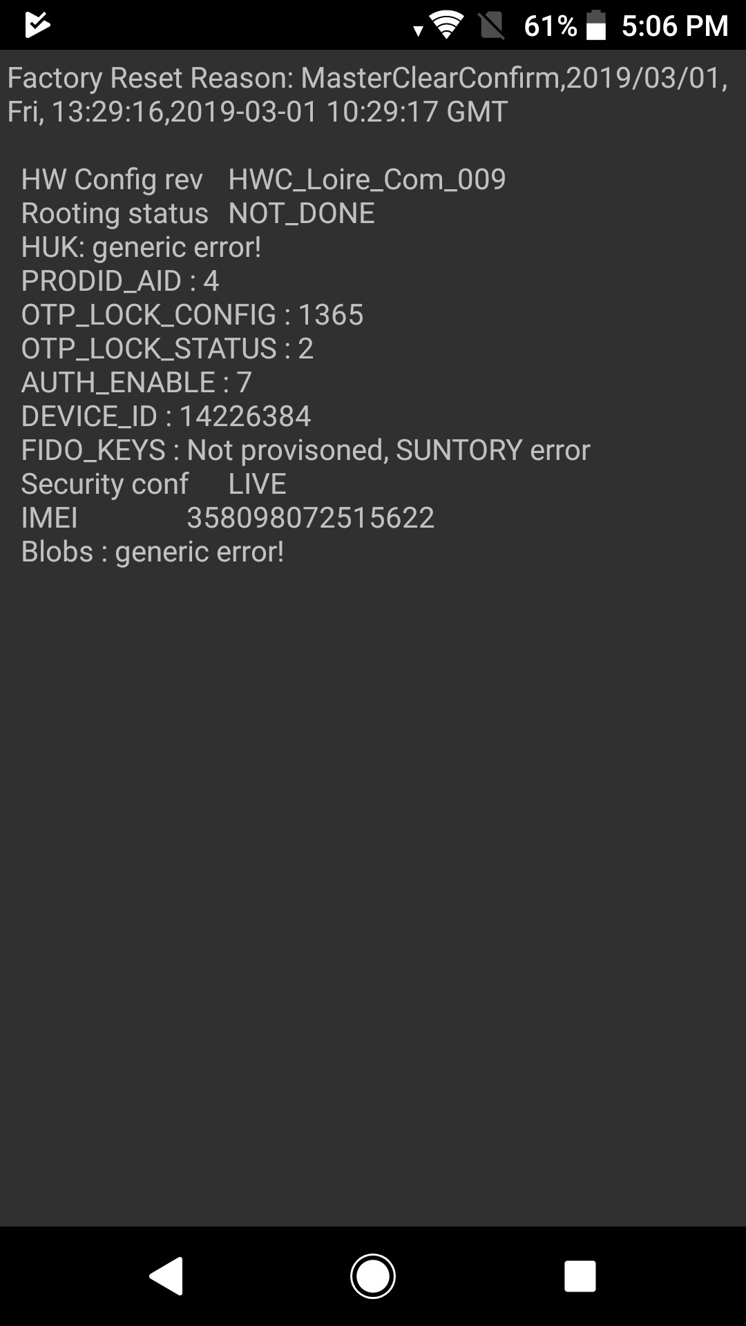 10. Перезагрузить телефон, настроить Android с нуля и восстановить TA из резервной копии."