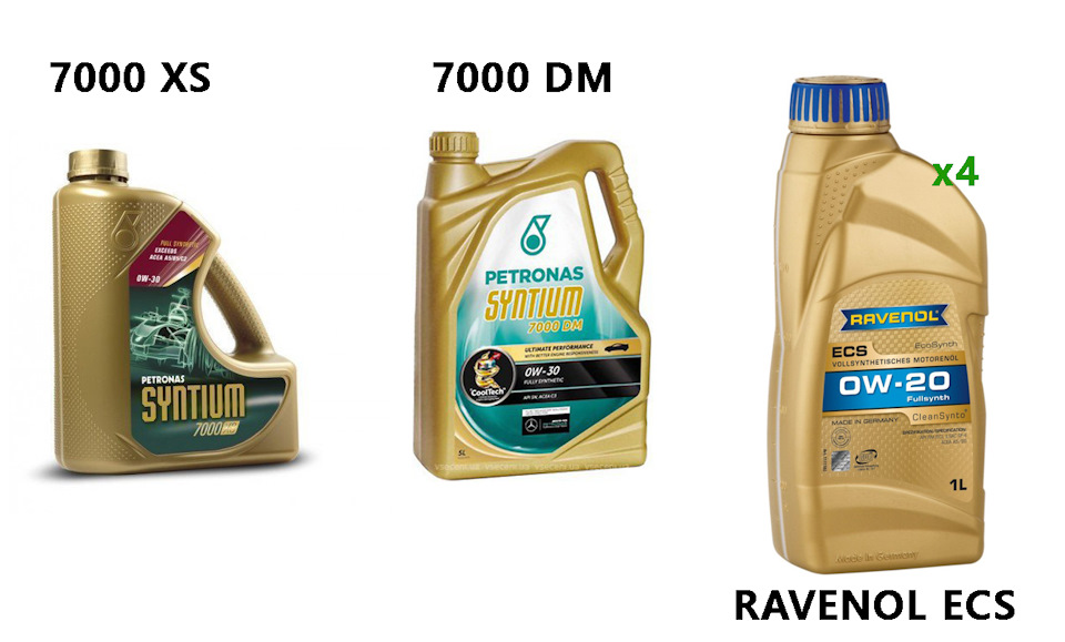 1. Я уже давненько заливаю масло Petronas Syntium 7000 XS 0w30. Масло отличное и по очень приятной цене. Но я решил попробовать что то более технологичное. У Petronas есть Syntium 7000 DM 0w30. Также читал много положительного о RAVENOL ECO SYNTH ECS 0W-20. И поскольку Равенол вышел дешевле чем 7000 DM выбрал именно это масло. +интересно разница между 0w20 после 0w30 по ощущениям (субъективным и, например, расход). И да, масло у меня мотор ни грамма не берет — это норма.