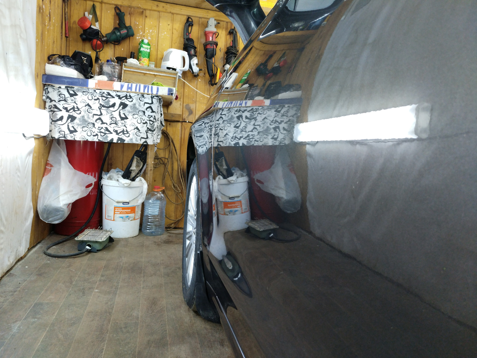 Поэтому сделали легкую полировку и локально (по царапинам) глубокую. Нанесли подложку "Nano Polish" + 3 слоя "Kragen 9H" + 1 слой "Ceramic Pro Light". В подарок нанесли антидождь "Glaco" на все стекла + на лобовое антидождь "Kragen".