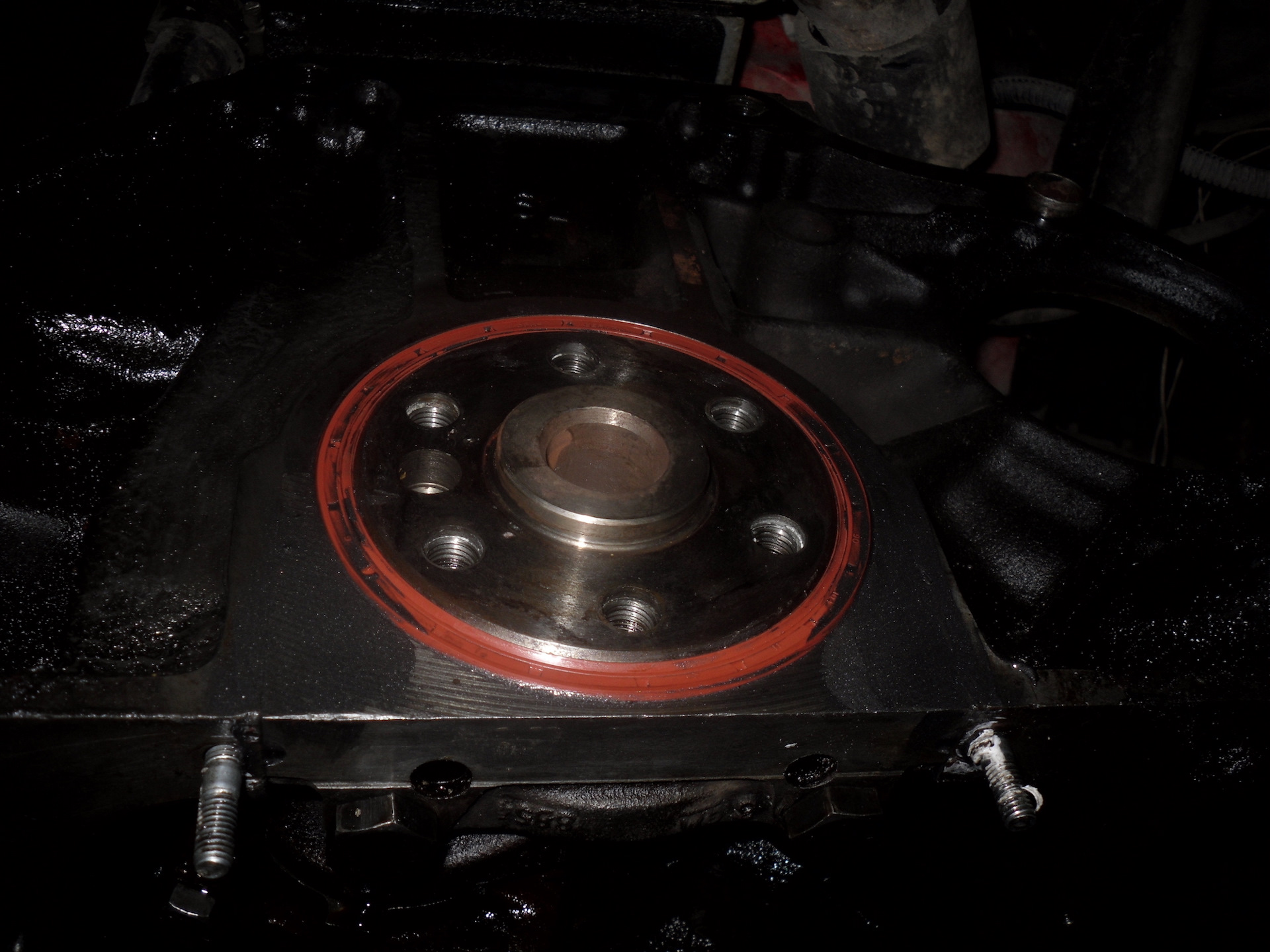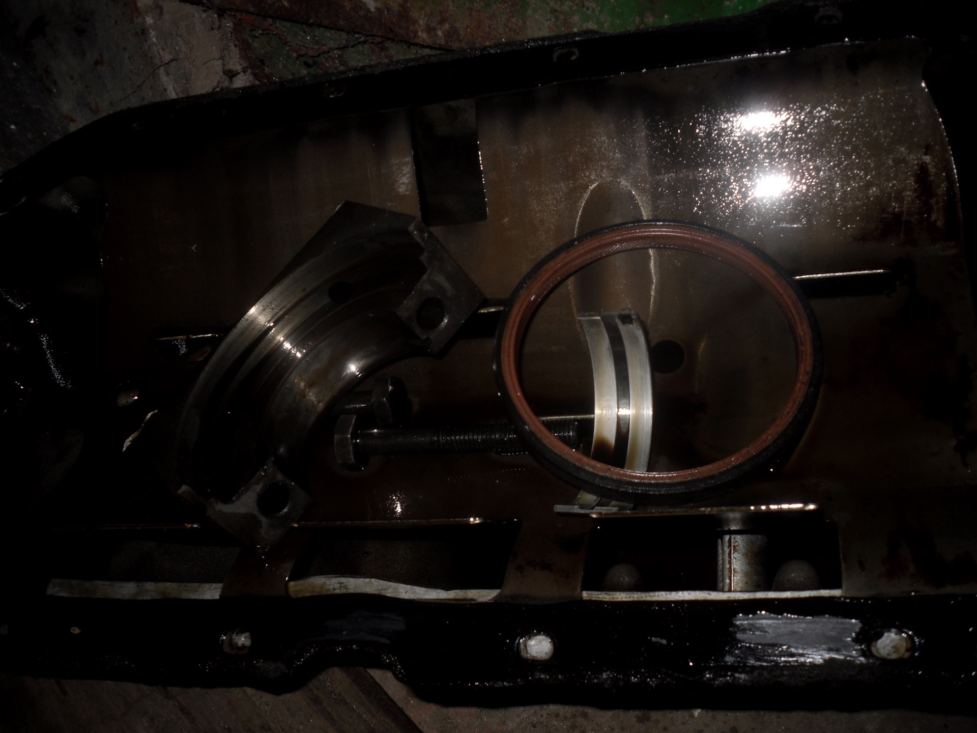 когда снимаешь крайний бугель, где подшипник коленвала, у него на боках канавки есть… после сборки через эти канавки со стороны поддона набивается герметик… вообще эта операция из балончика делается но мне смысла покупать герметик в балоне нет… много очень его там…