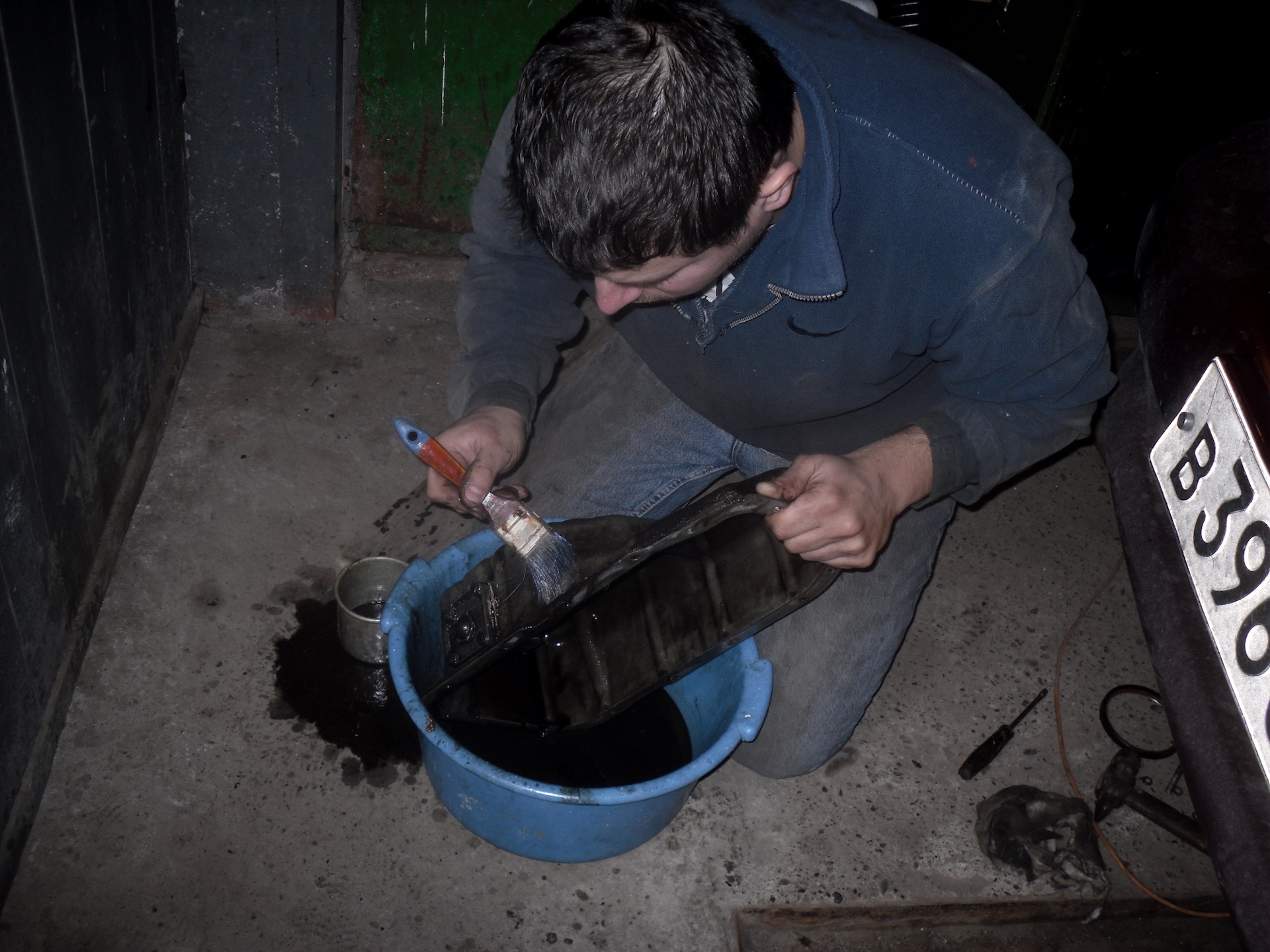 далее, ну все потихоньку собрали, залил 2 литра какого то дерьма в коробку, темного, густого, не знаю что, у меня много разного масла в подвале… залил на пару дней проверить как будет работать и все такое, так как лить сразу 2 литра недешевого кастрола как минимум очень глупо…