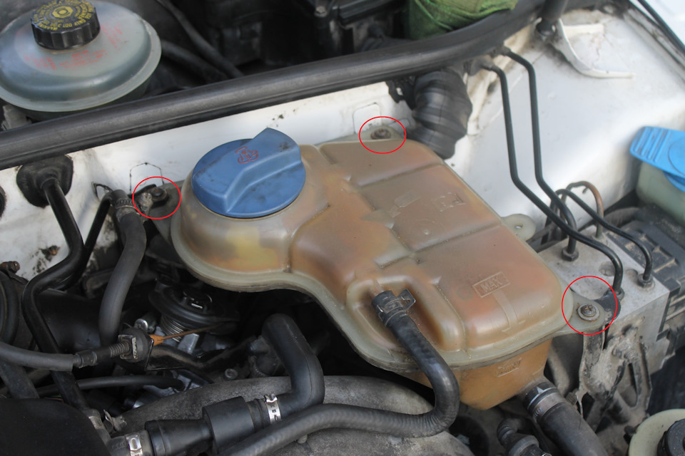 Откручиваем 3 шурупа крепящие расширительный бачок.
