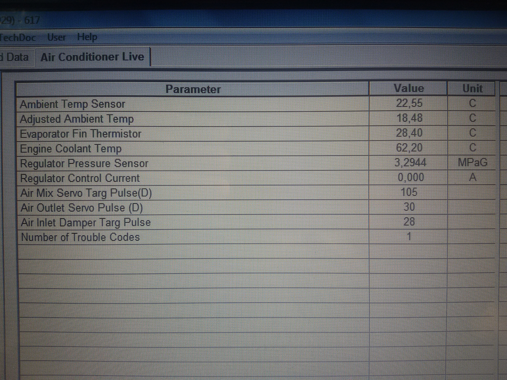 В общем после зимы перестал включатся кондёр. считал ошибки вылезла ошибка B 1423. Я кобы или обрыв в цепи управления клапаном или высокое давление.Давление показывает 3,29Mpag. И смущает параметр regulator control sensor — 0