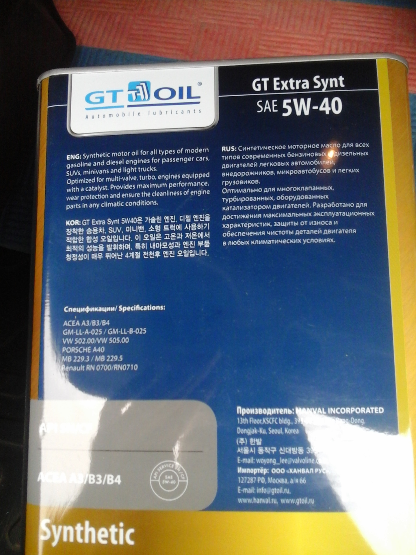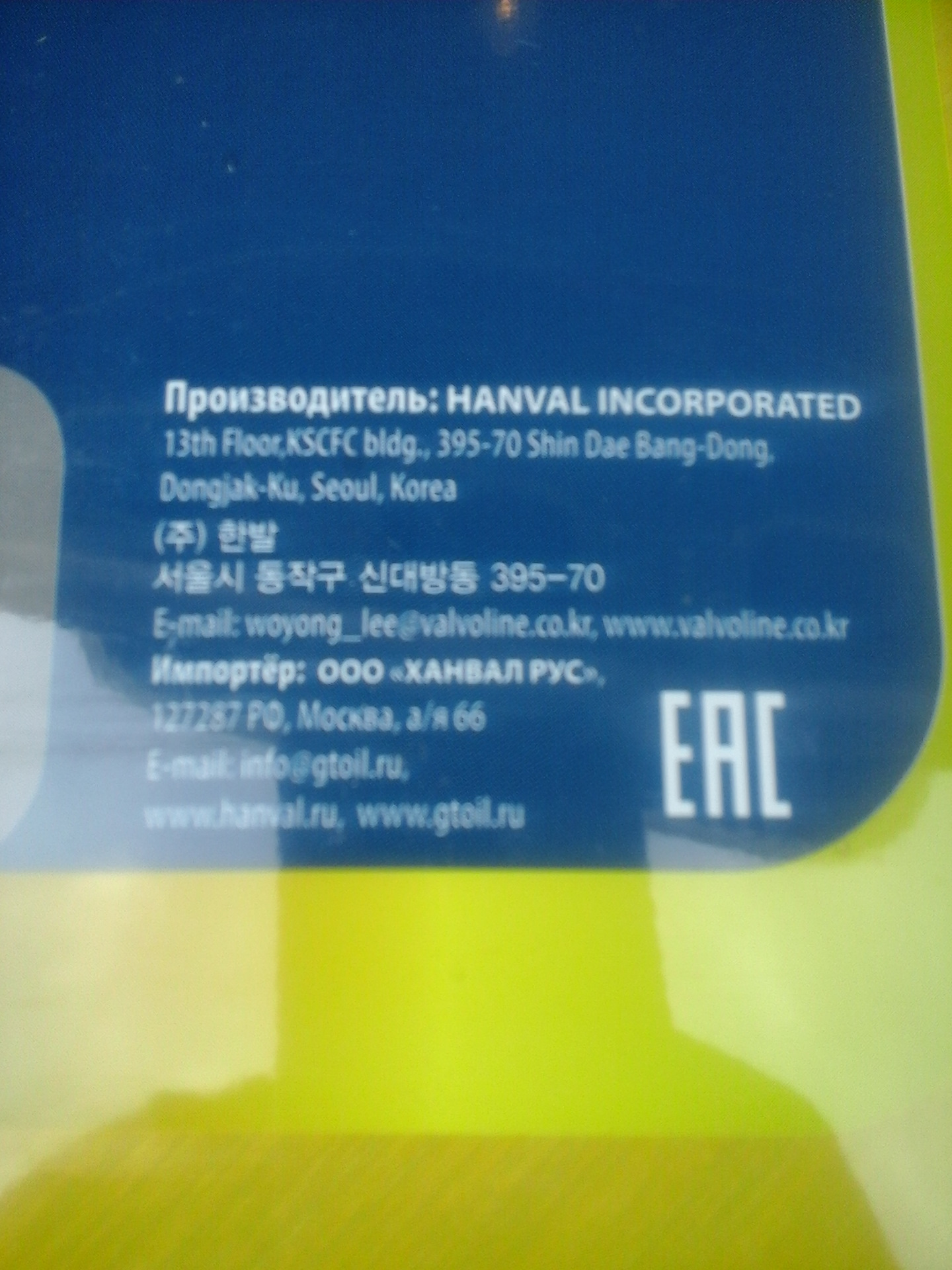 4-х литрушка железная и литрушка пластиковая. Допуски последние есть. Канистры сделаны качественно. На обратной стороне канистры есть реквизиты Hanval Inc, в них в электронном адресе фигурирует Valvoline, что наводит на мысль о связи масел GT Oil с брендом моторных масел Valvoline.