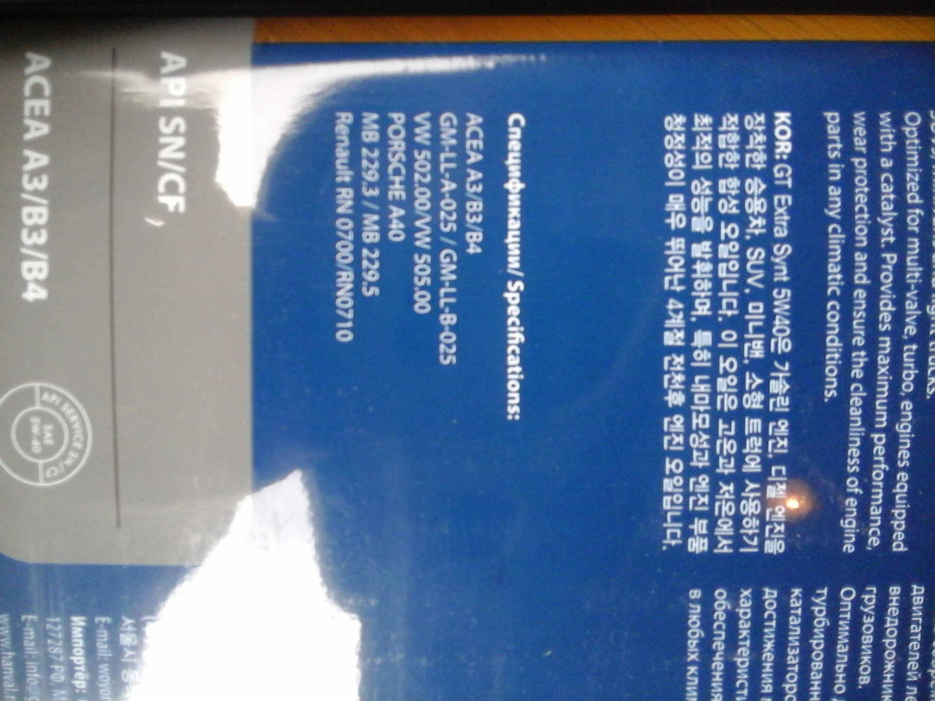 Отправил заявку на моторное масло GTOil Extra Synt 5w40. Для нашего жаркого южного климата самое то. Такую вязкость лью с новья в мотор.