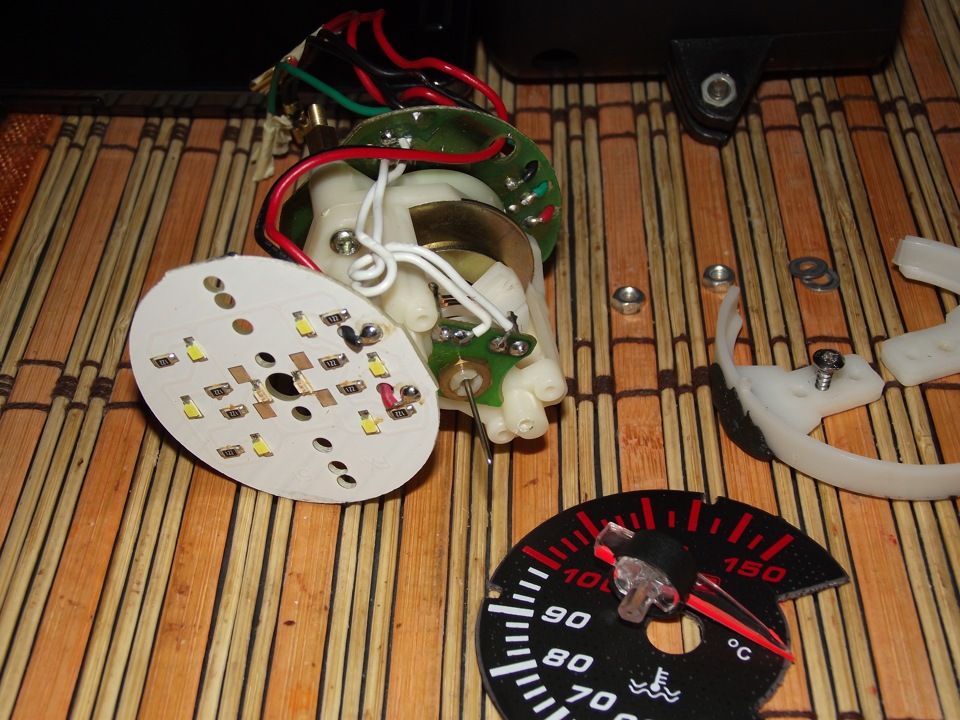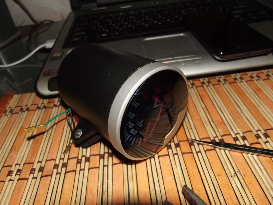 На прошлой неделе стрелка термометра не поднималась выше -20, машина хоть и стояла ночью в гараже, но всеравно промерзала и я заметил, что начал плохо работать выносной указатель температуры, начинал показывать температуру после 70 градусов, подклинивала стрелка. Указатель был демонтирован и принесен домой, где был отогрет, после чего стрелка начала нормально шевелиться без подклинивания. Указатель был разобран, правда варварским способом, но по другому в домашних условиях не получилось.
