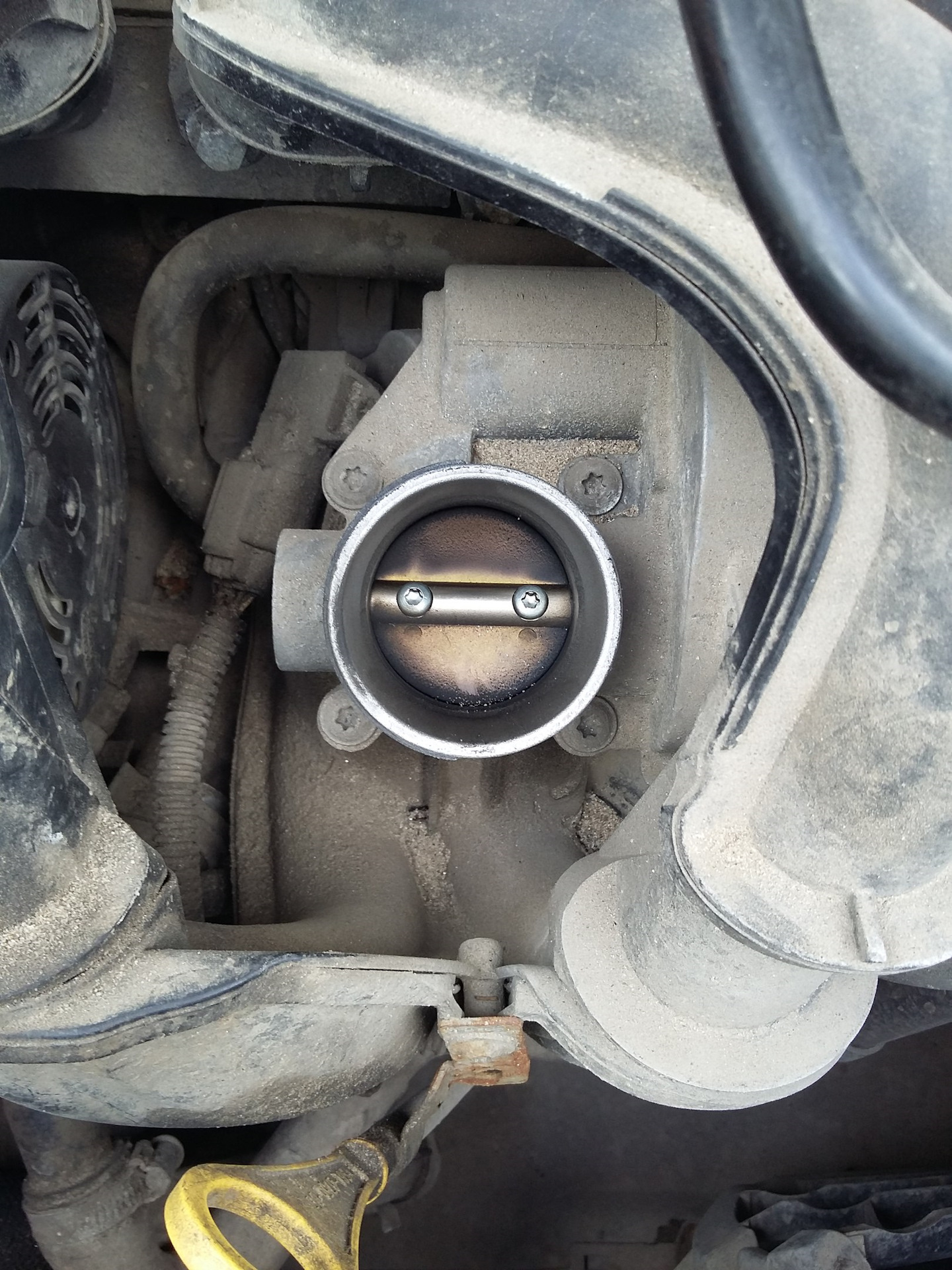 И вот она заслонка, я на этой машине откатал уже порядка 75к и ни разу ее не чистил.