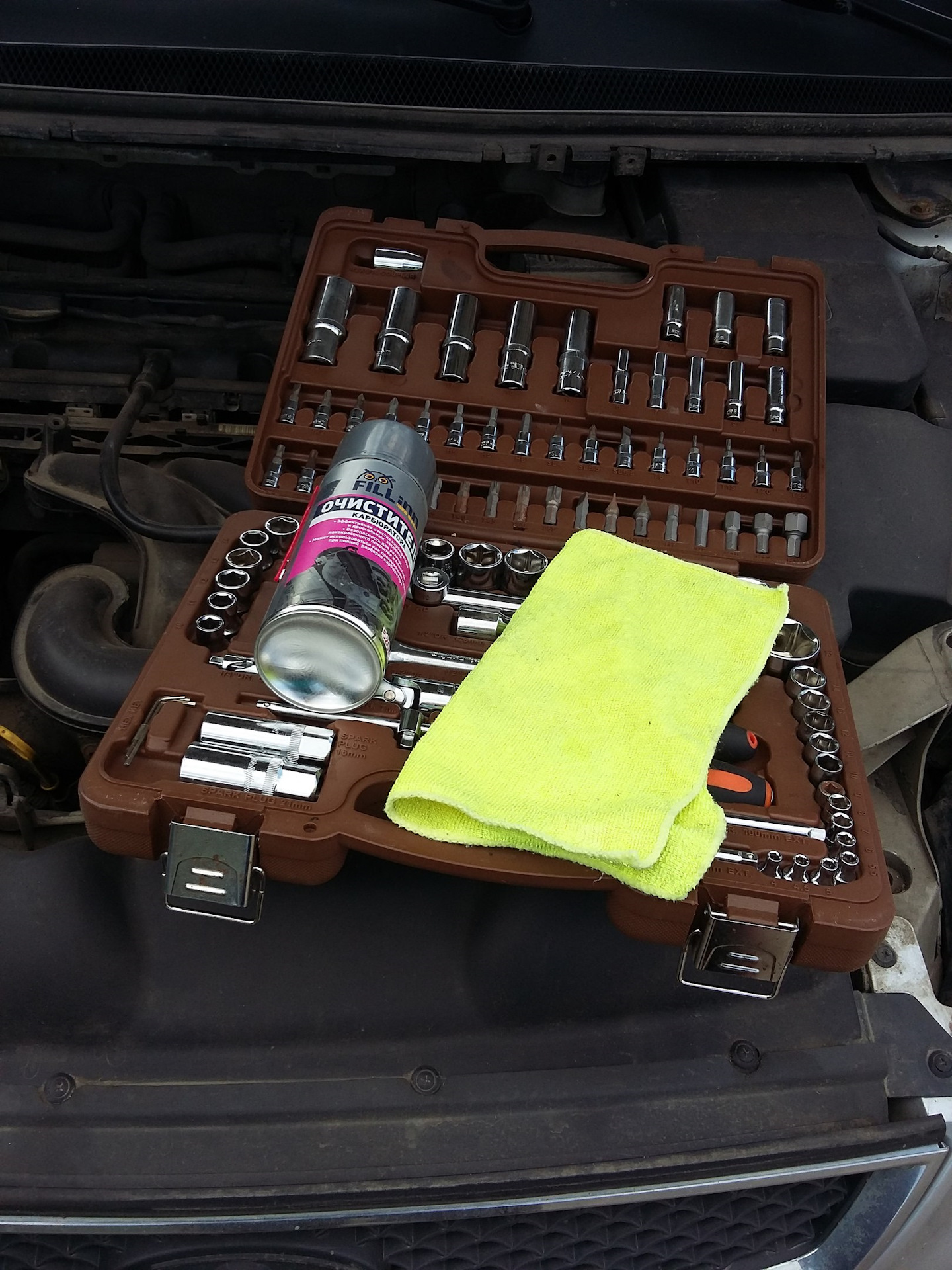 Нам понадобится, очиститель карба, инструменты и чистая тряпочка.