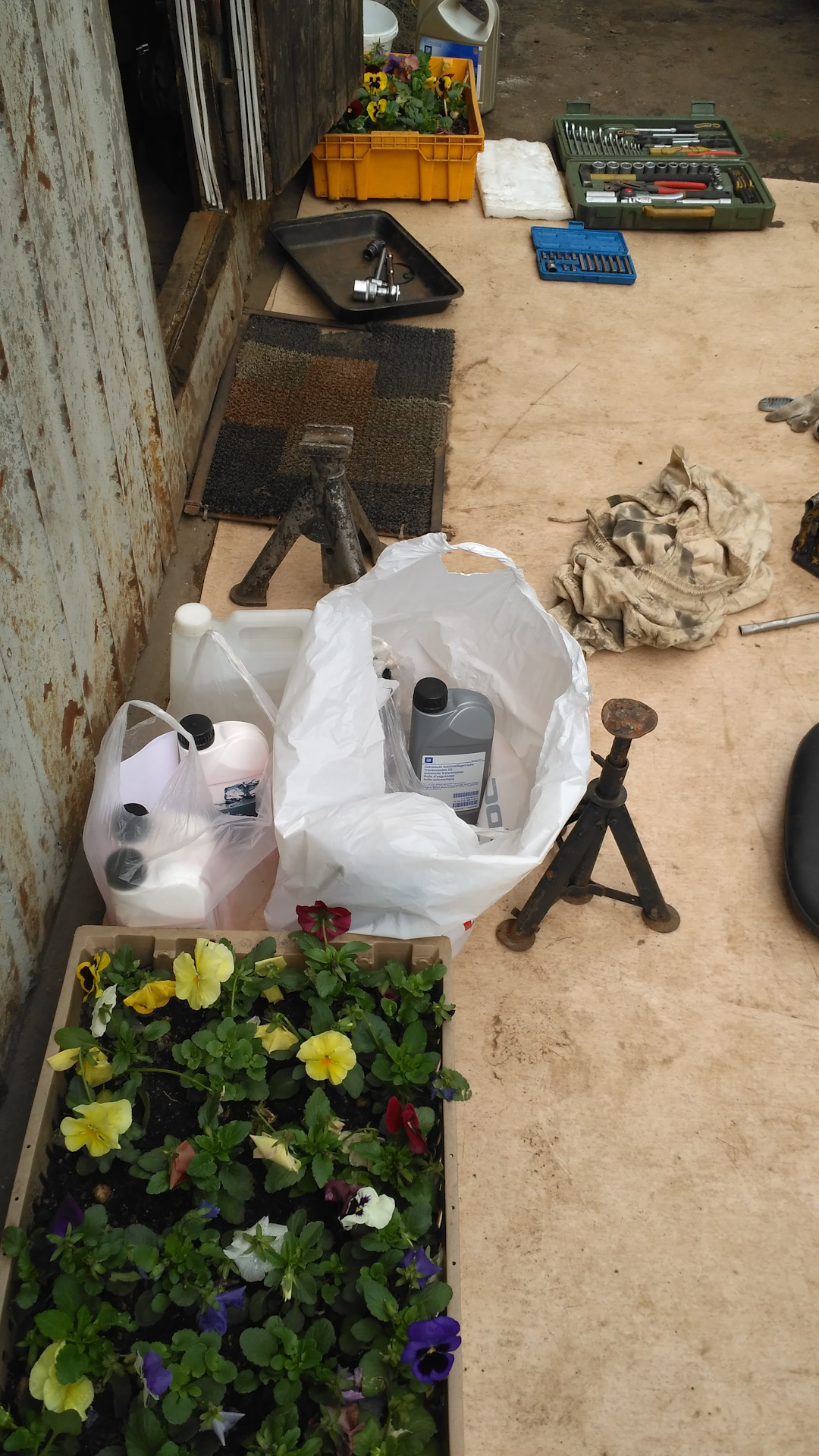 После лютой зимы на счётчике масла осталось 46%, а с первой замены масла в АКПП (в ноябре 2016)осталось две канистры (покупал с запасом). В общем решил поменять и то, и другое. Ну и, до кучи (машине с февраля пошёл 6ой год), сменить антифриз.
