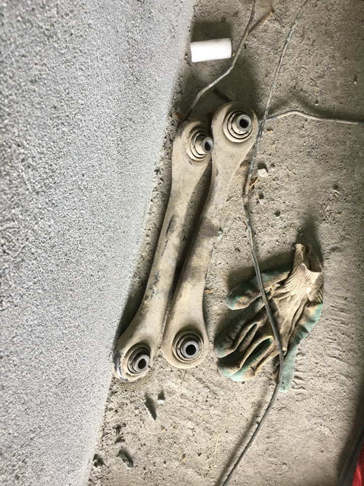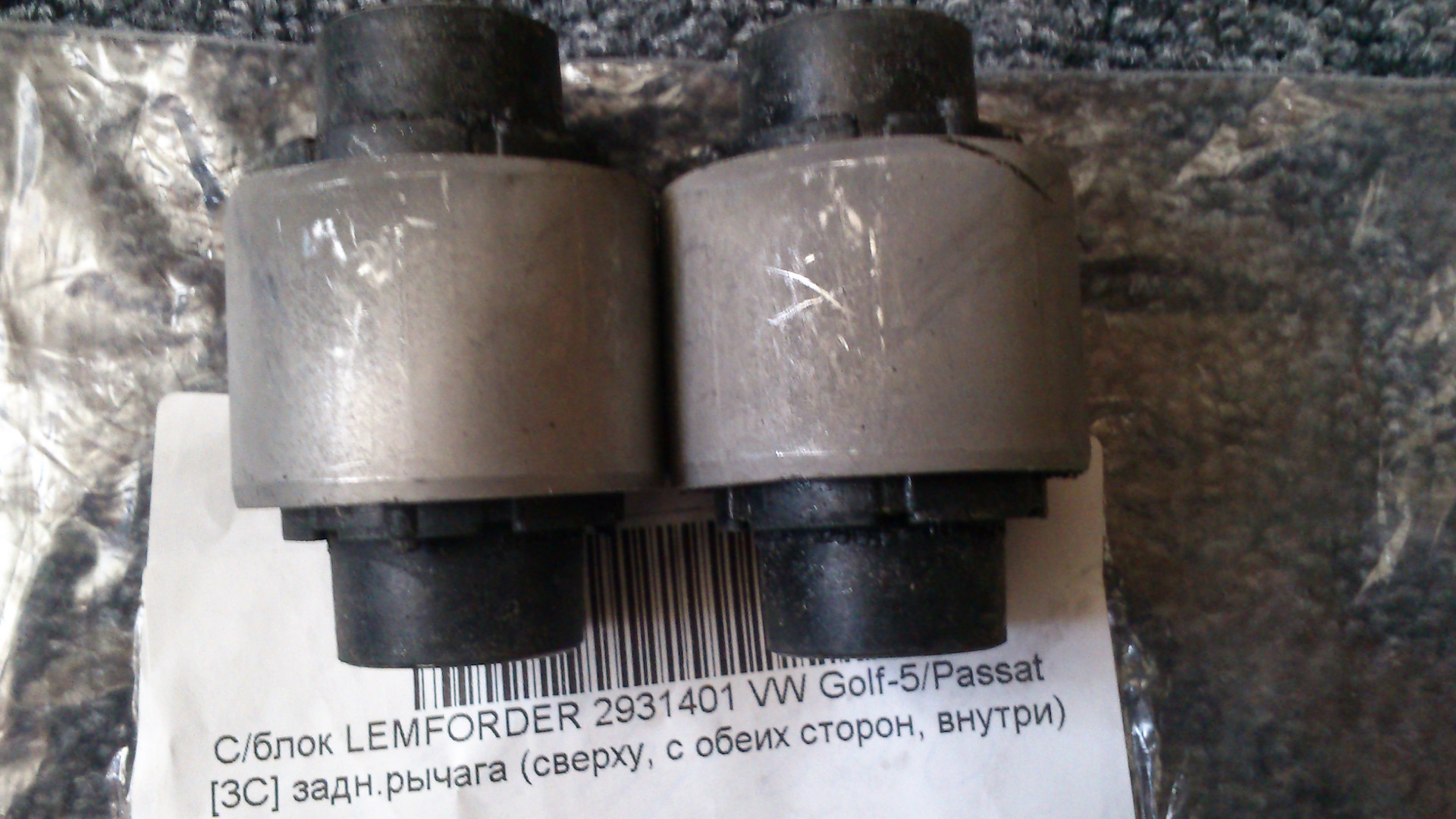 1. Рычаг подвески, оригинальный сайлент 1K0 505 541 D ну и Lemferder 38620 01. Для снятия этого рычага мне понадобился вороток с трещеткой, головка на 16(четыре болта), головка на 18(два болта), и открутить стабилизатор, он у меня не пошел, пришлось срезать болгаркой, все равно ему уже хана была, отжать рычажок суппорта, чтобы скинуть трос ручника и два фиксатора на нем. Перед выпрессовкой обязательно нужно запомнить как стоял старый сайлент, я делал насечки напильником, и новый встал как надо. Да еще нужно обратить внимание перед разбором как стояла верхняя чашечка, я замерял линейкой, и после запресовки затянул так же как и было перед разбором. Вся процедура на поднятом домкрате и с подставкой, страховка прежде всего.