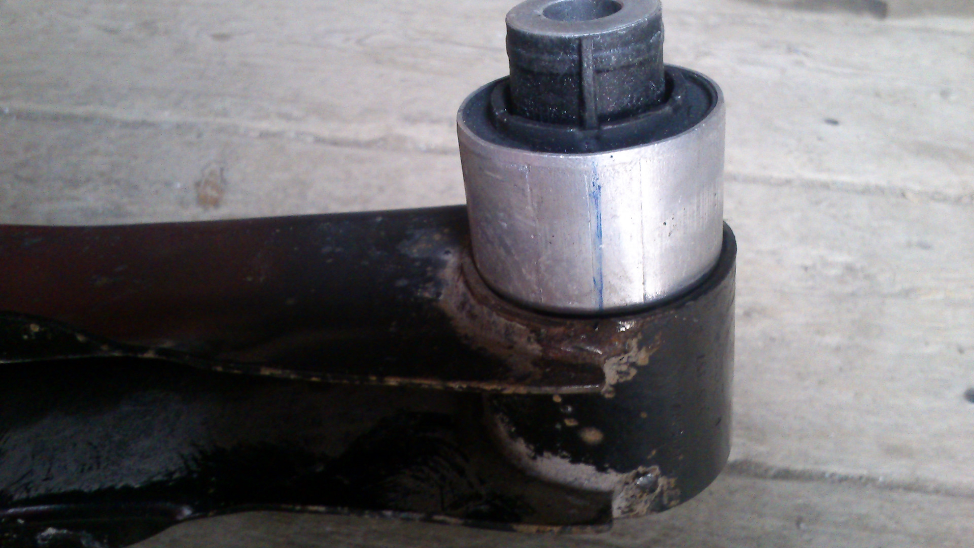 3.Рычаг подвески, поперечный нижний. Lemferder 29917 01. Перед выпрессовкой стоит обратить внимание как стоял старый, я делал метки маркером. Сам сайлент уже чем обойма рычага, поэтому посмотрите какое расстояние с обоих сторон, я замерял штангерциркулем. Да еще, сам сайлент имеет небольшую ОВАЛЬНУЮ форму, при запресовке встает как надо. На эксцентриковом болту делал метку маркером, чтобы при сборке он встал так же как и стоял.