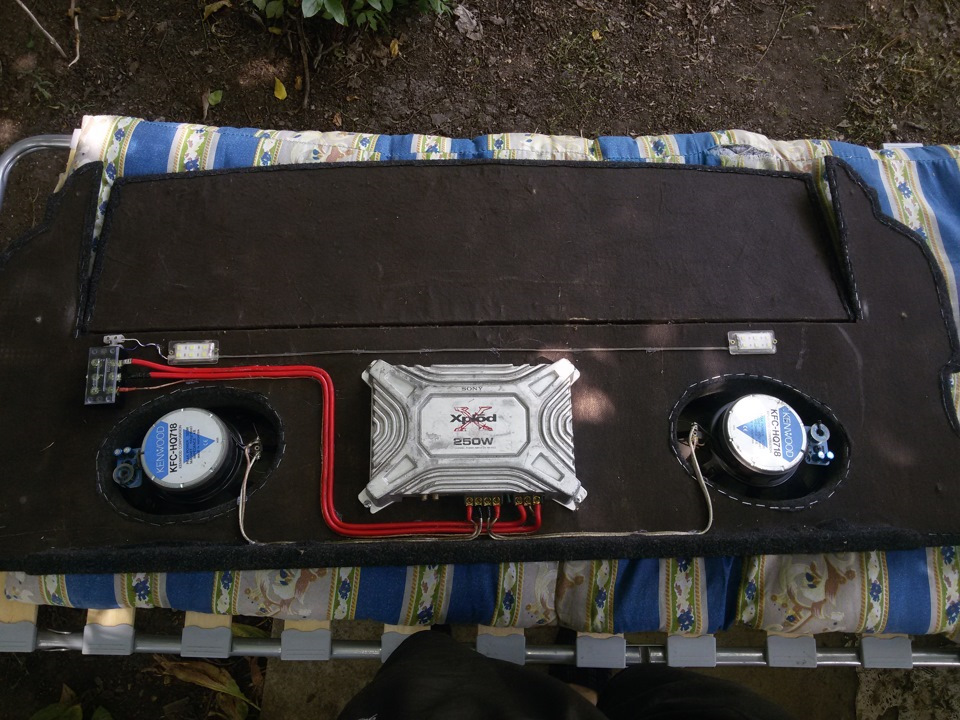 Ну усилителя пока нету (поставлю чуть позже), думал кстати на счет этого варианта, но тянуть провода назад не захотел. А чем сидуха плоха для крепежа усилителя? Спинка железная, вроде нормально должно быть. Думал крепить на полку, но верхногами не особо хочется, плюс куча проводов будет видно. На сиденье как мне кажется будет нормально. Городить какой-то спец.крепеж\полку не особо хочется))))