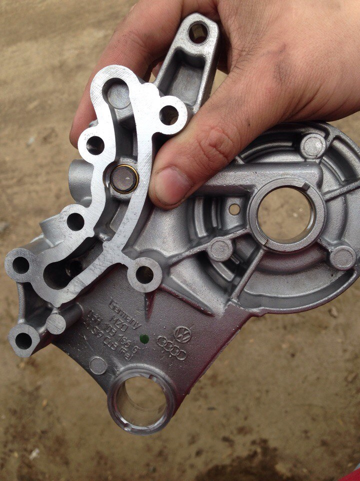 Обнаружил, что сетчатый фильтр был рваный. Возможно это и стало причиной поломки. Если грязь забила масляный канал, то вполне возможно, что давления масла под распредвал не хватило и он прокрутился в сухой постели. Поставил новый: