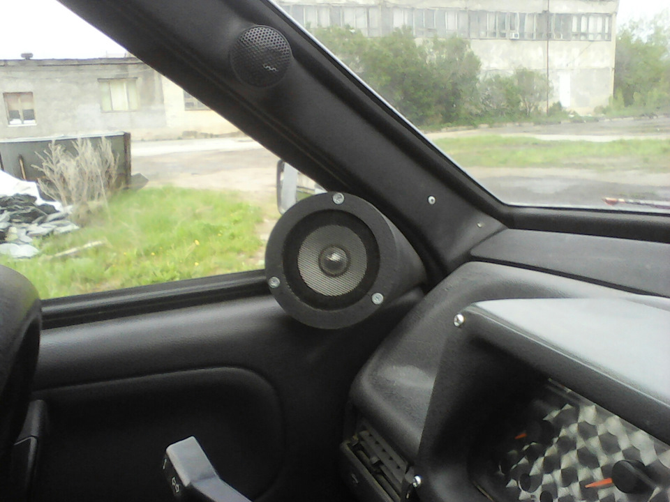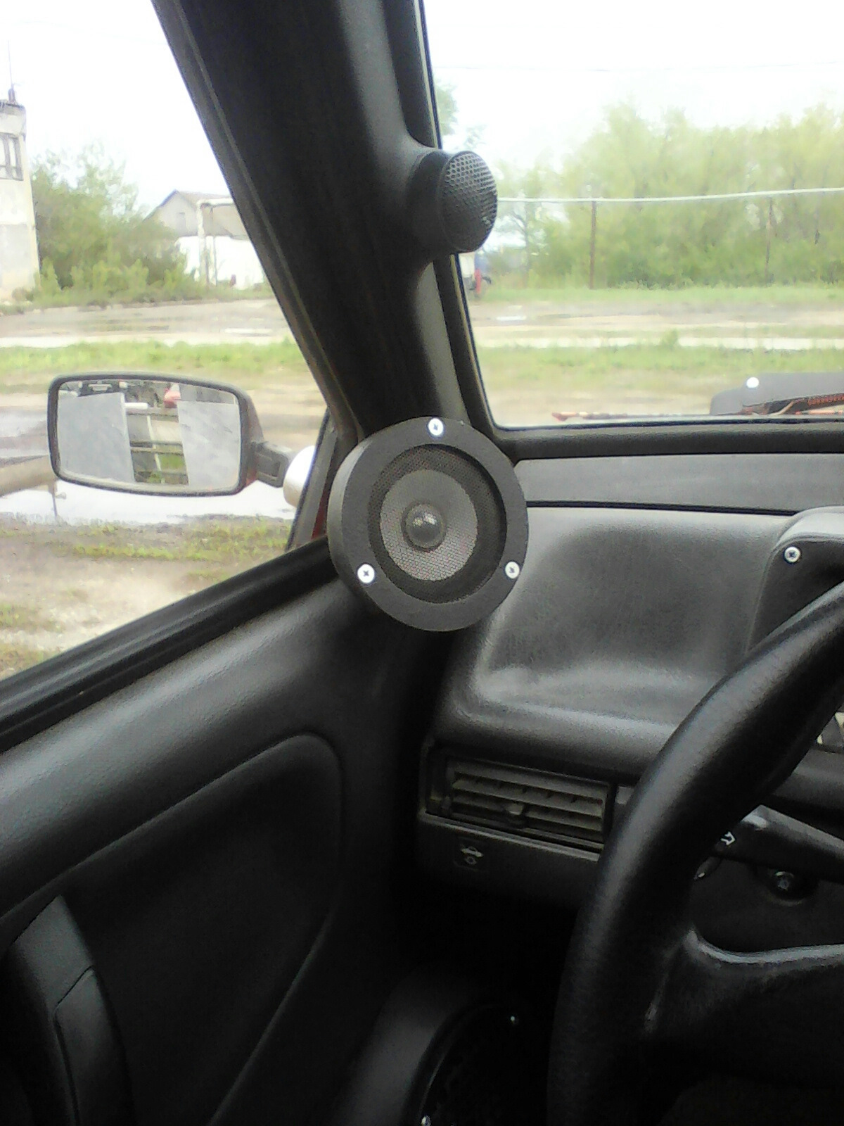 Сегодня снял зеркала, просверлил крепёжные отверстия и прикрутил подиумы среднечастотников в сборе. Провода кинул в дверь. Если завтра будет возможность всё подключу и послушаю что в итоге получилось:)