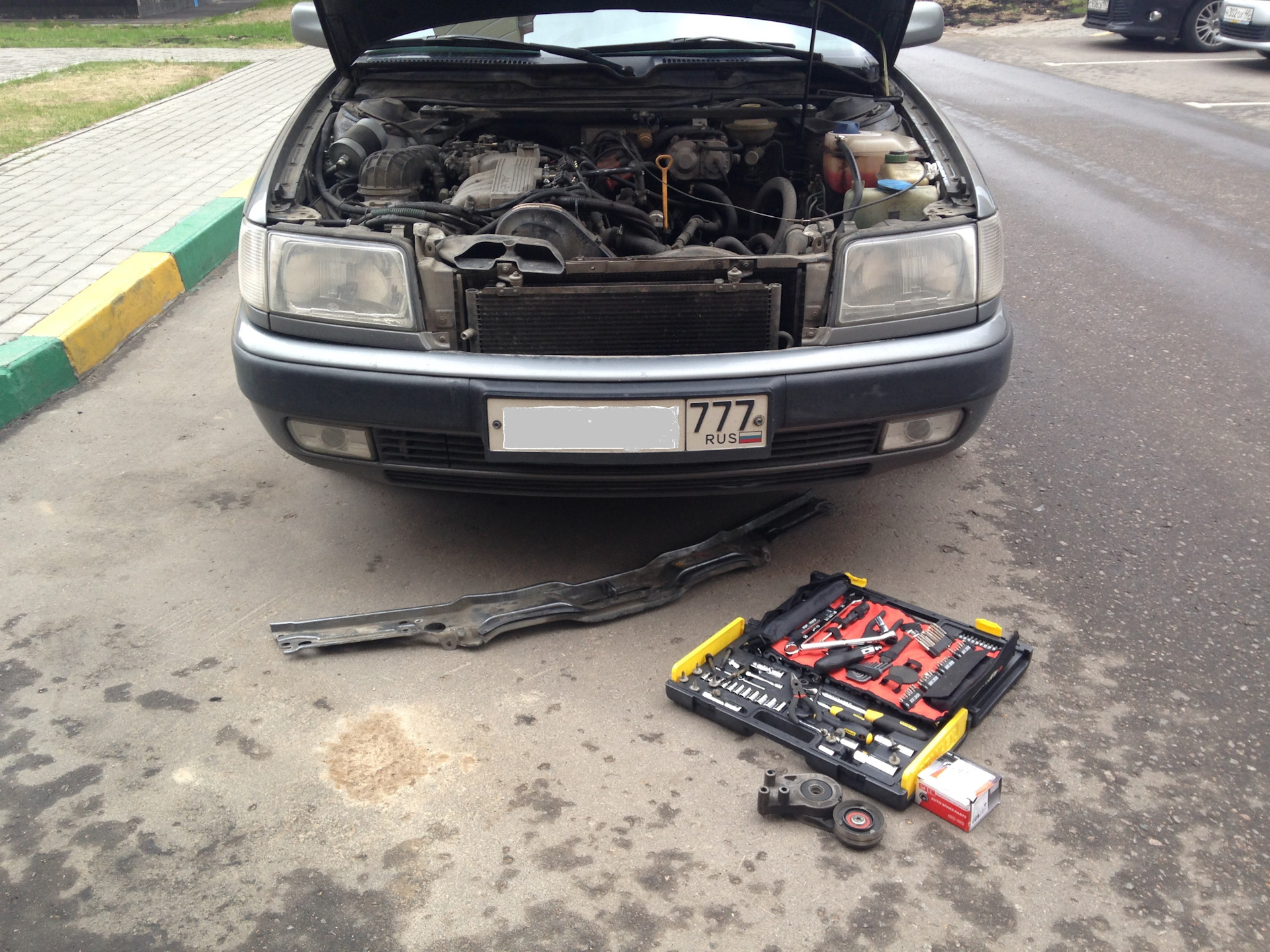 Честно не могу понять зачем было снимать бампер ) ГРМ и всю приблуду можно поменять и без снятия бампера ну не знаю может тебе так проще