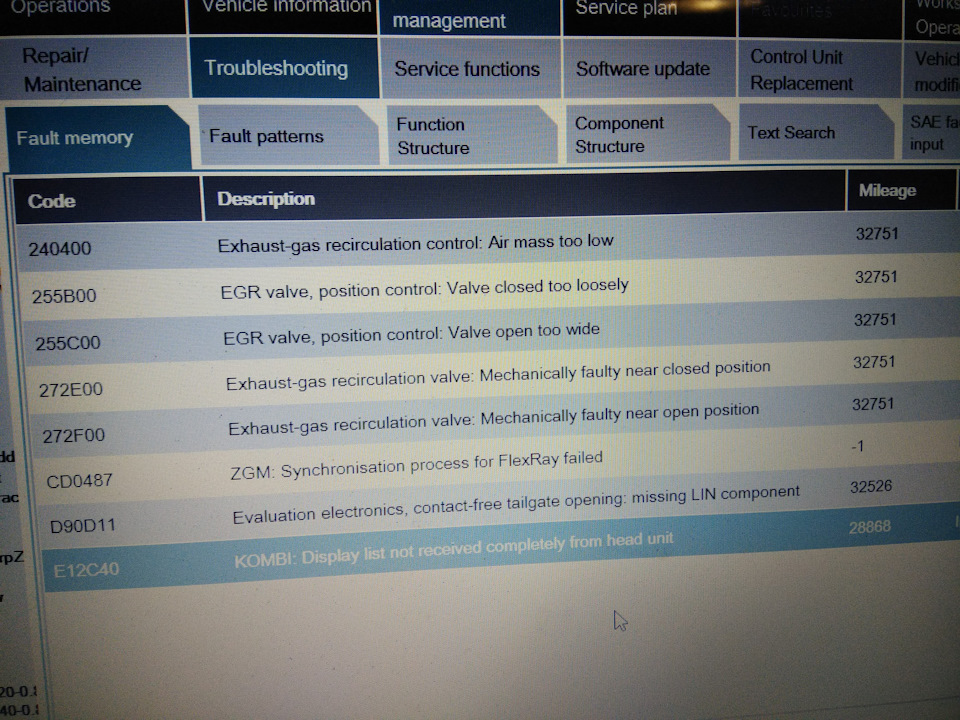 Получается что по каждому факту выпадения ошибки на экран в блоках появлялось сразу 5 ошибок, все разные, но все о клапане EGR и все на одном пробеге и в одно время. Всего получается эта штука выпадала на экран уже 3 раза, последний раз прямо перед дилером. Смотрел ошибки по блокам только один раз, сколько там сейчас записей об ошибках неизвестно. Но получается что ошибки дали о себе знать сразу вывалившись на экран.