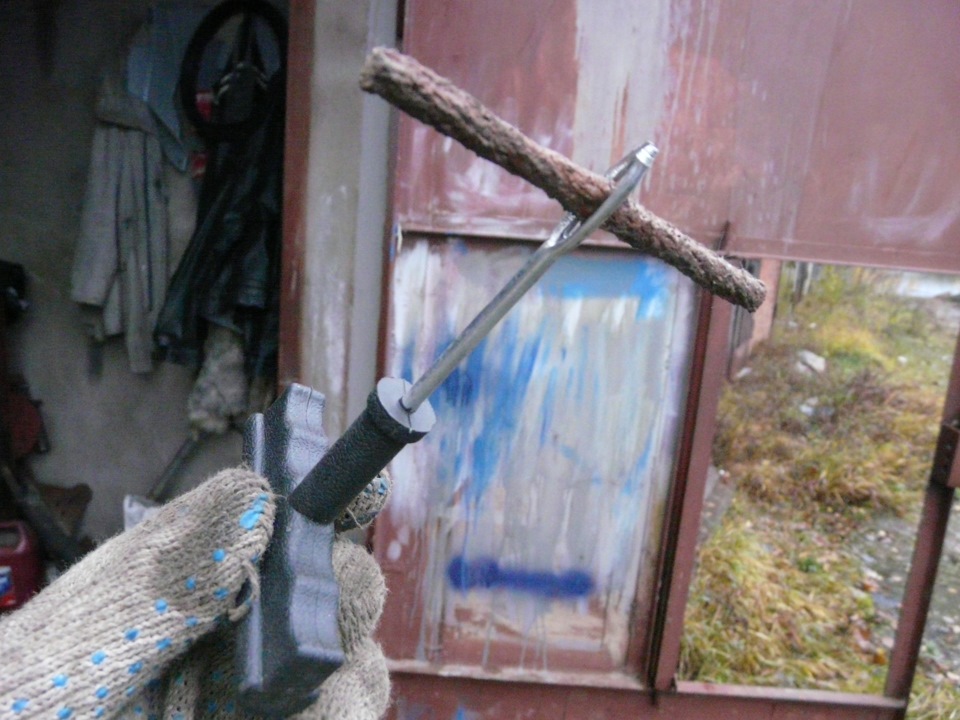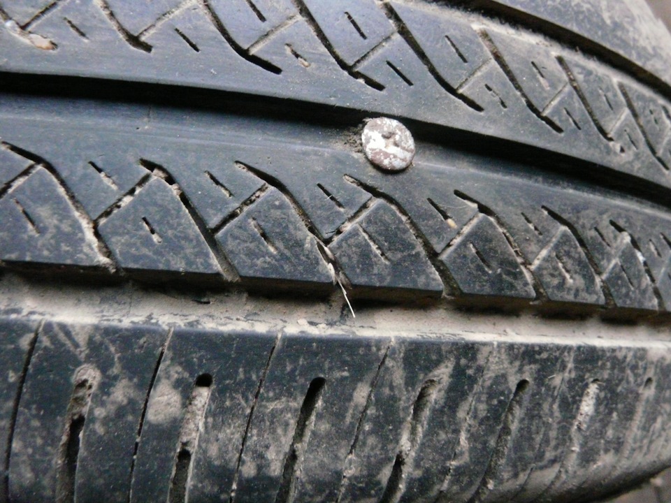 Нехитрый набор: шило для зачистки и подготовки места прокола, шило для монтажа жгута, клей, 4 жгута. Стоимость варьируется от красоты инструмента :))) Мой — порядка 100руб.Стандартный прокол. Как правило с саморезом можно долго еще кататься, но в итоге будет травить и спускать достаточно быстро.Фото выкладываю ремонта снятого колеса из гаража. По случаю ремонт проводится на авто, не снимая колеса. Итак, протираем место прокола и зачищаем шилом.Далее берем и продергиваем жгут в монтажное шило.Предварительно наносим клей шилом для зачистки. На жгут тоже можно капнуть. Усилие надо чуть больше прилагать при установке жгута. Лучше при этом подкачать колесо ( на спущенном покрышка от прилагаемого усилия сразу прогибается).Резко выдергиваем монтажное шило.Срезаем хвостики. Остается вот такая кака :))) Шина теперь не спустит до следующего прокола или до конца истирания/своего ресурса.