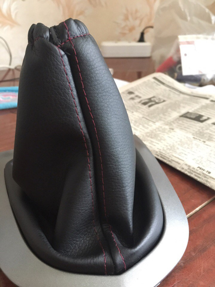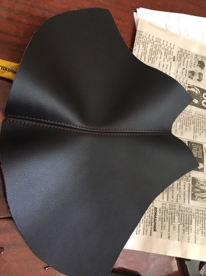 Всем привет, потихоньку доделываю салон в одном стиле (черная кожа / красная строчка). Вот сегодня добрался до чехлов кп и ручника. На все про все ушло часа 3-4. По кп все элементарно, а вот ручник ска, он меня одолел! Переделывал его разок… В целом результат более чем хороший, смотрите на фото! Всем добра