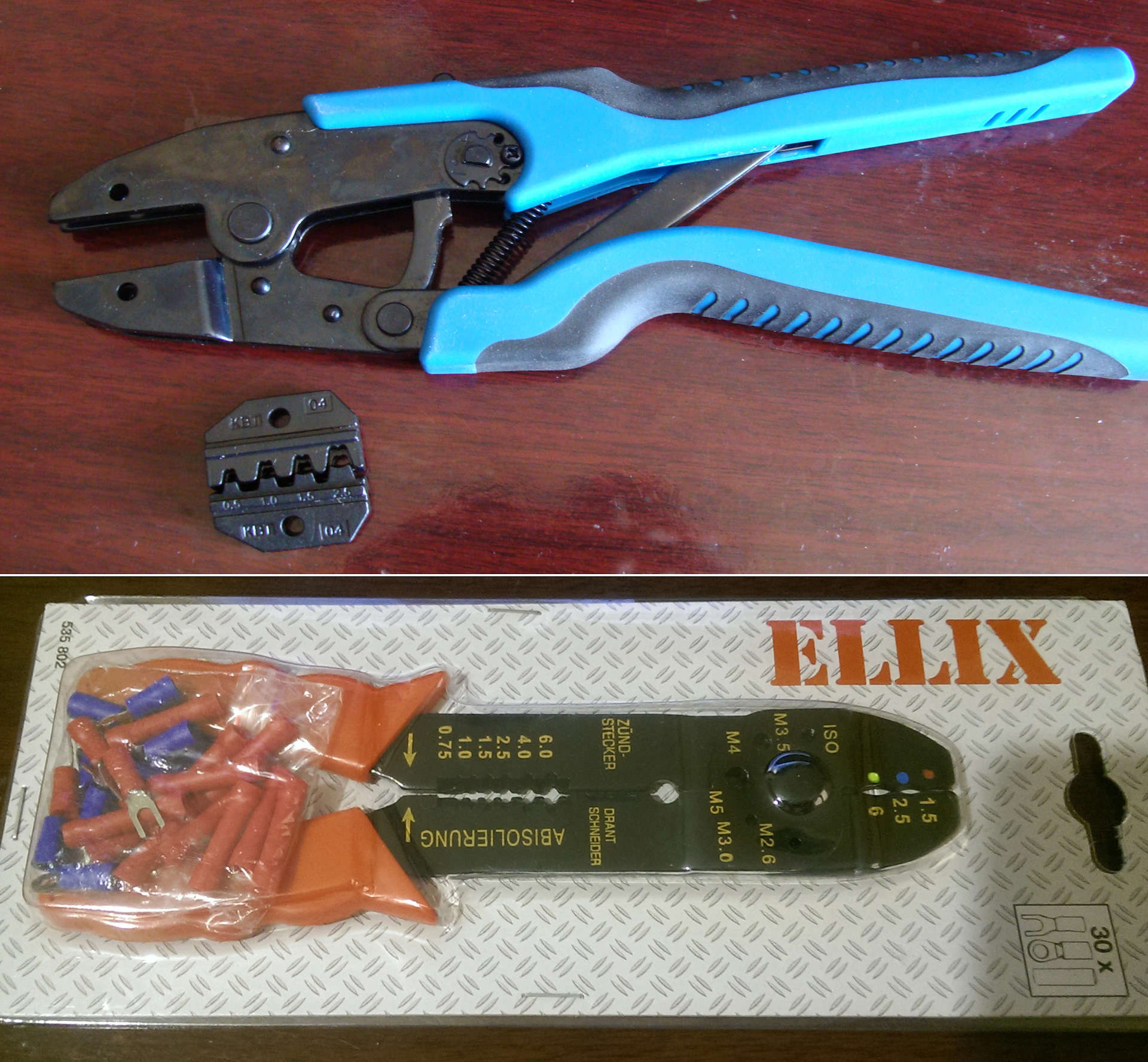 Клещи для обжима изолированных гильз — китайский дешман, купленный в ОБИ с комплектом обычных изолированных гильз и наконечников, для такой работы сойдет.