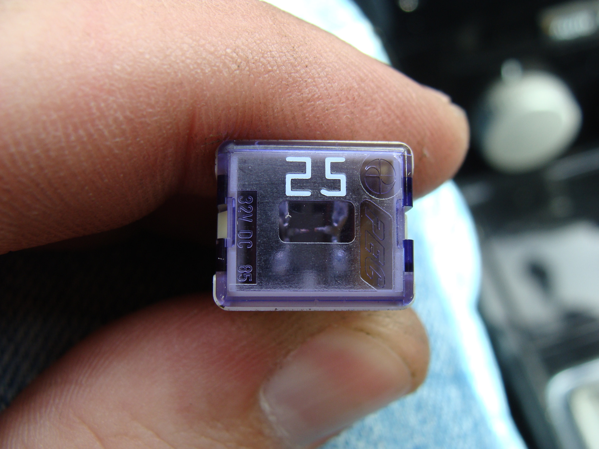 Полез в багажник, вынул предохранитель №23 на 25А, собсно его состояние тоже ожидаемо — сгорел