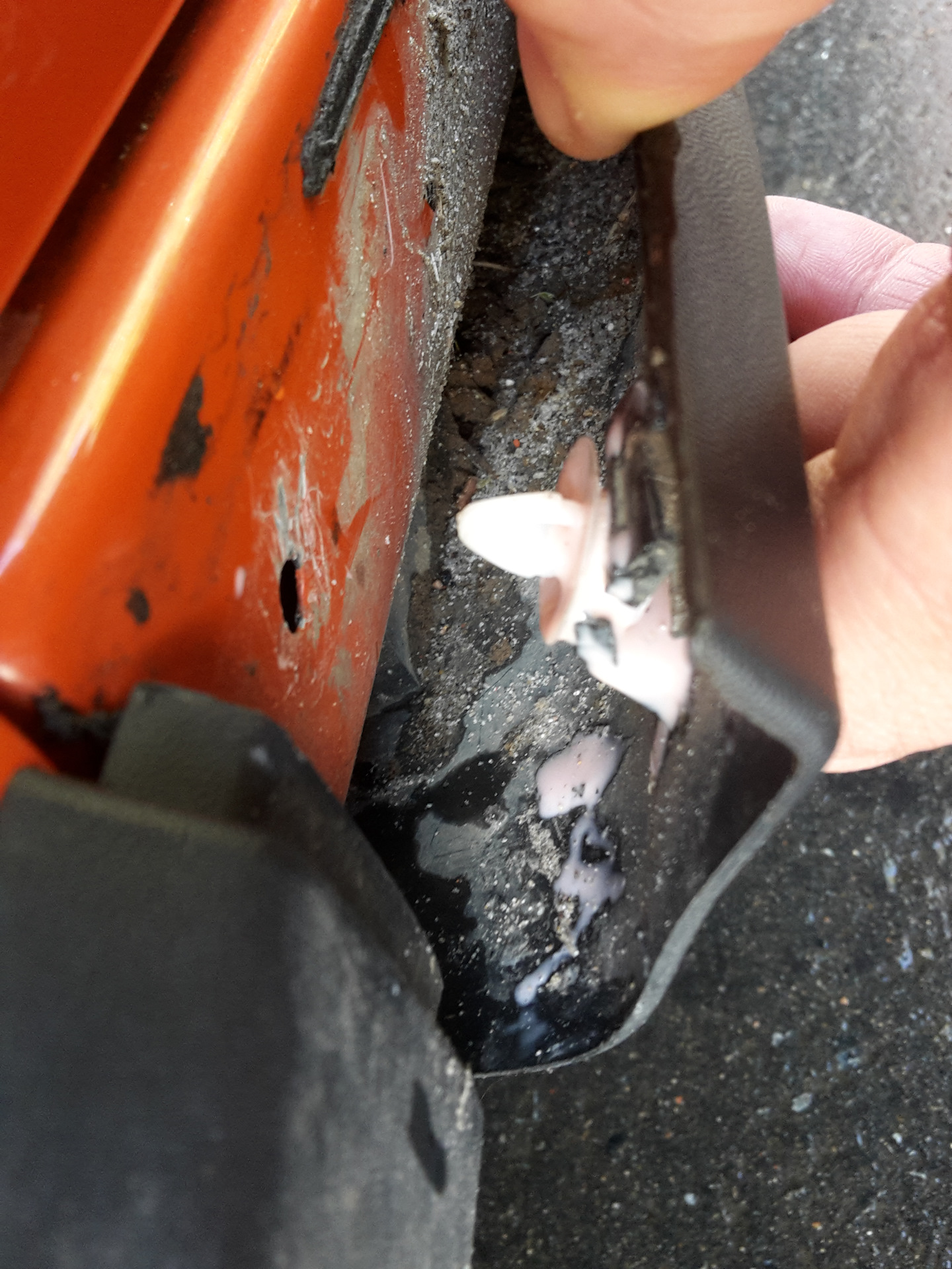 Посмотрев, понял что из крепления к молдингу вылетел пистон и остался в кузове. Я пистон достать не смог — сломал, думал он похож на крепления дверных карт, стал тянуть а он собака и треснул.