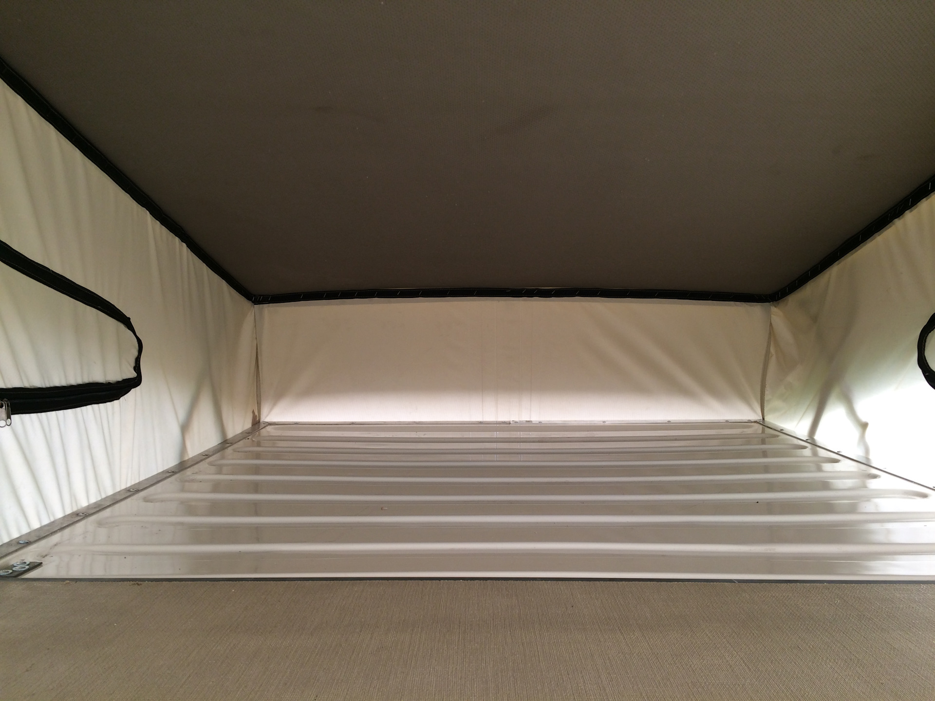 Ткань чего? Салон-автокожзам teximat. Палатка точно не знаю, какая-то специальная, пропитанная.
