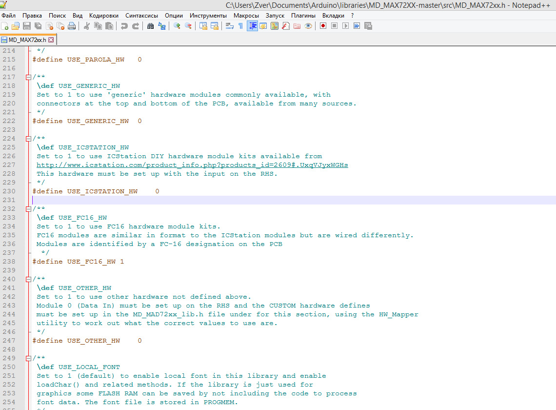 C:\Users\alex\Documents\Arduino\libraries\MD_MAX72XX\src ( "alex" у меня у вас другое).