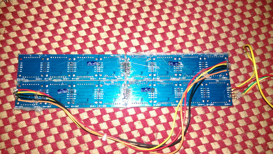 По поводу перекидывания только DIN. Я тож так сделал, стало вообще неустойчиво работать, очень много сегментов взглючивать. избавился только тем, что всё-таки 3 провода опять затянул и в оплётке с припайкой с одной стороны на минус. Провода питания параллелил часто, немного помогло — реже стали глючить сегменты.