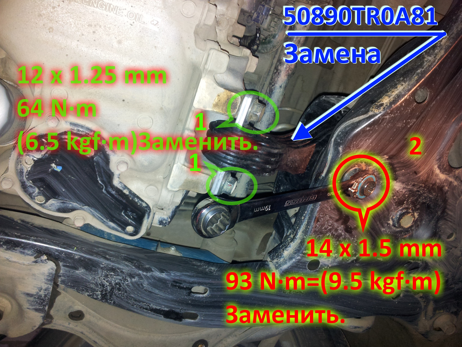 Замена левой опоры АКПП, 50850-TRO-A81