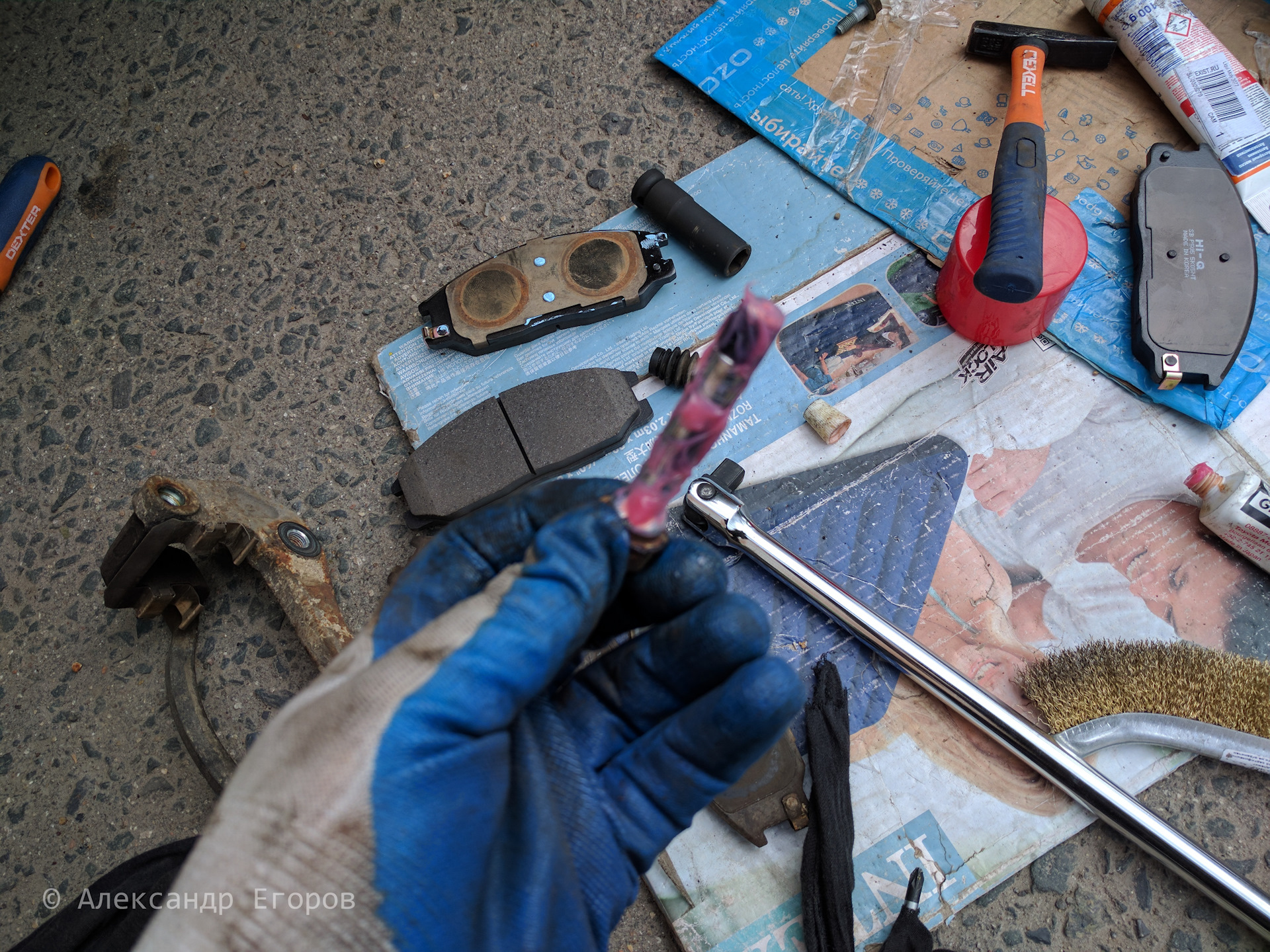 Далее, почистив скобу, железной щеткой, я смазал её специальной смазкой для тормозных механизов, от липкой моли. Этого можно не делать, сделал так, на всякий случай.