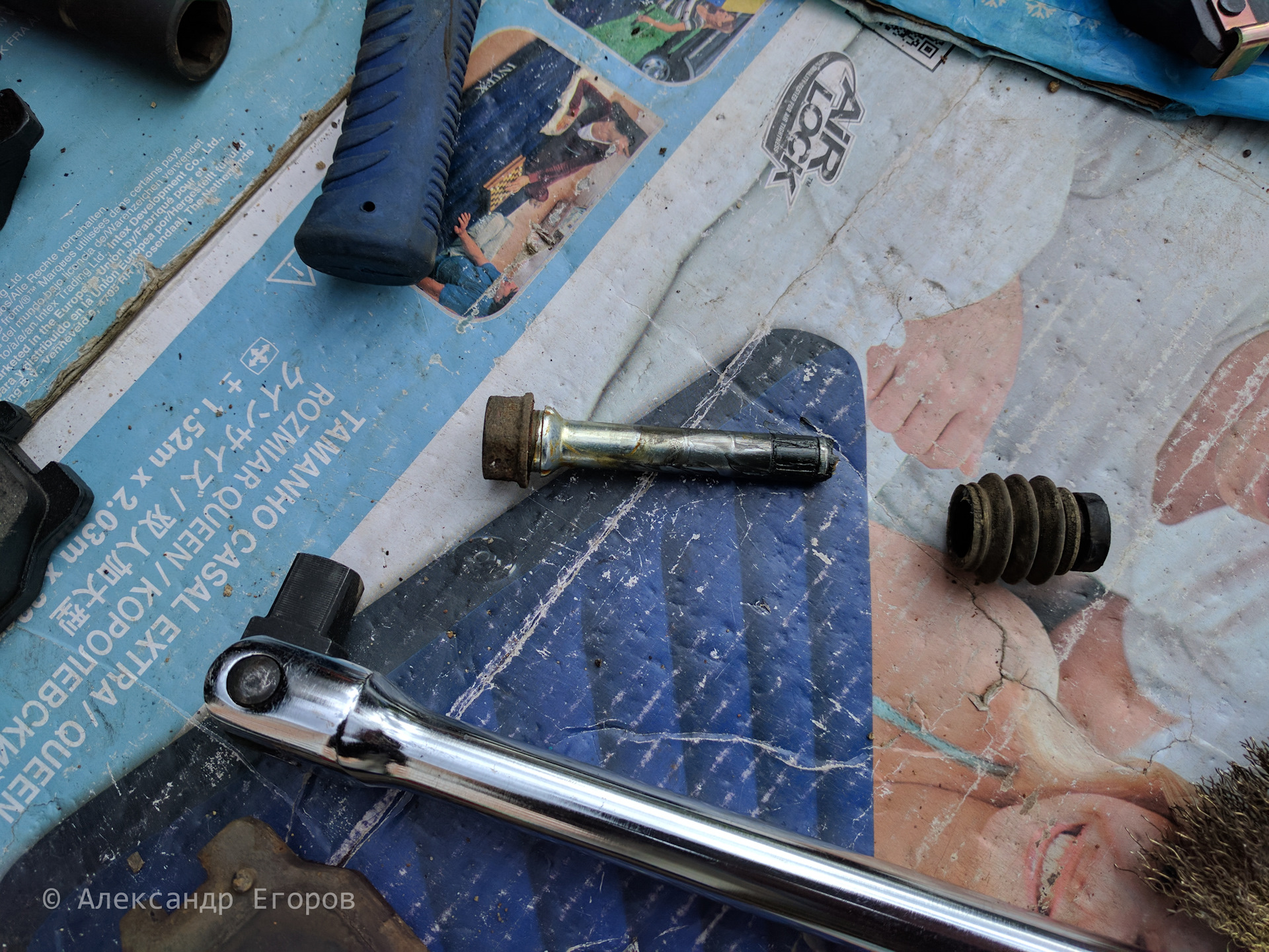 Направляющие и пыльники изнутри, я мазал смазкой Toyota 08887-83010, о которой писал в посте про замену задних тормозов год назад.