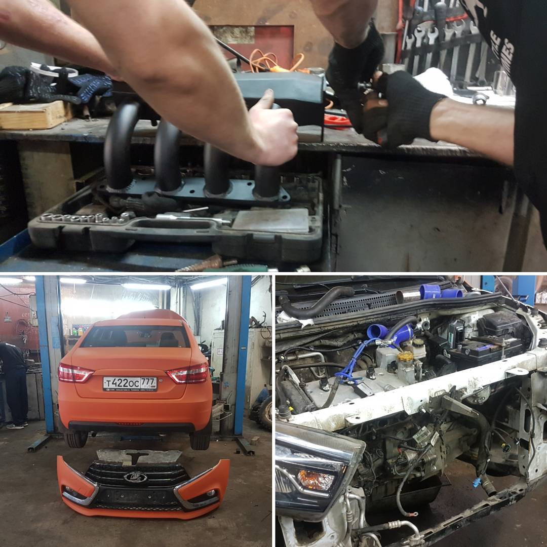 не требуют даже интеркулера (!) и прекрасно ездят. Я не проверял, может быть и так. Но с Вестой бюджетный путь не прошел. Автомобиль требует все больших и больших вливаний. Из-за относительно плотной компоновки и расположения турбиной за двигателем, последняя находится в крайне незавидном положении, легко раскаляясь до 500 градусов и выше при замерах температуры корпуса, что влечет за собой значительный нагрев и холодной части, и перегрев воздушного потока для образования смеси. Итог — автомобиль тухнет после двух разгонов и начинает ехать хуже стока. Придется ставить интеркулер.
