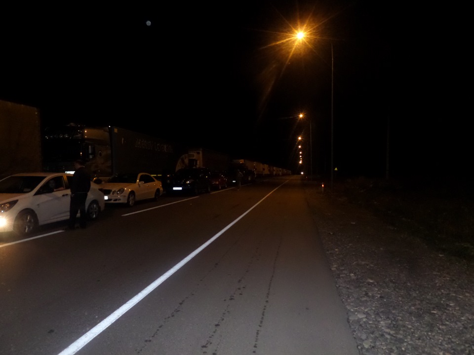 Автор ехал через пару дней после открытия перевала после оползня, поэтому пробка, граница 3 недели была закрыта