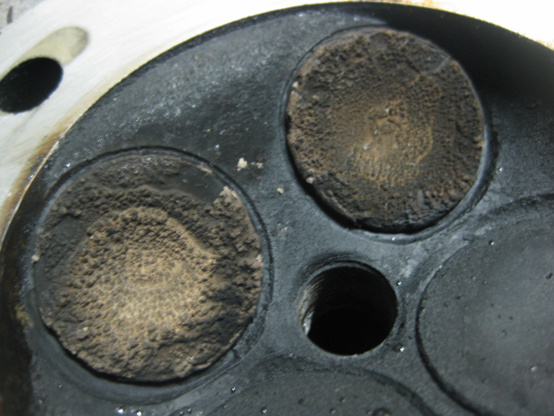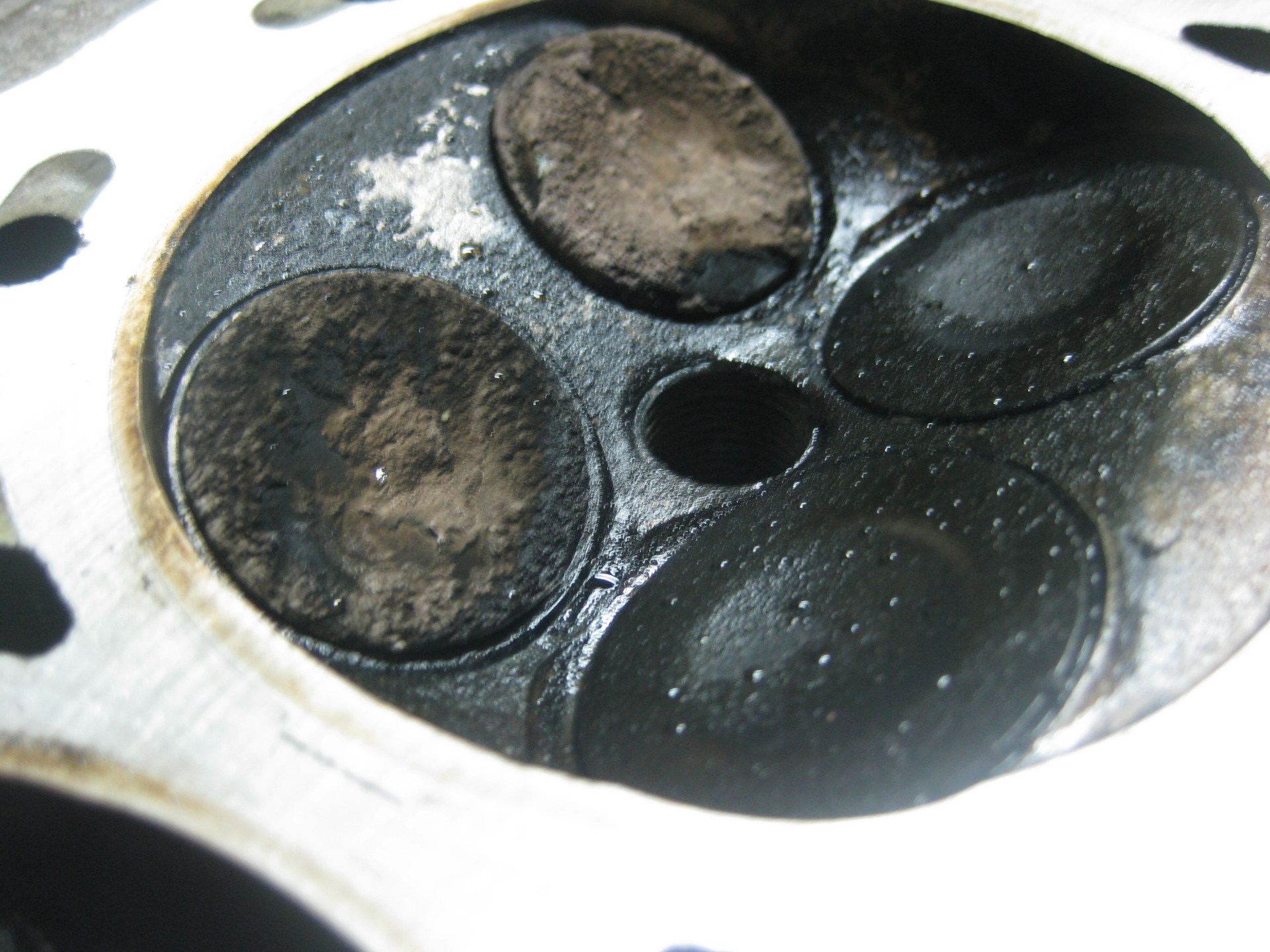 Вместо переточки канала после «витебских специалистов», решил заварить канал аргоном. После этого шлифанул голову и высверлил заломыш. Залил керосина, чтобы проверить клапана на герметичность – керосил исчез через 5 секунд, стало понятно, что придется притирать клапана.