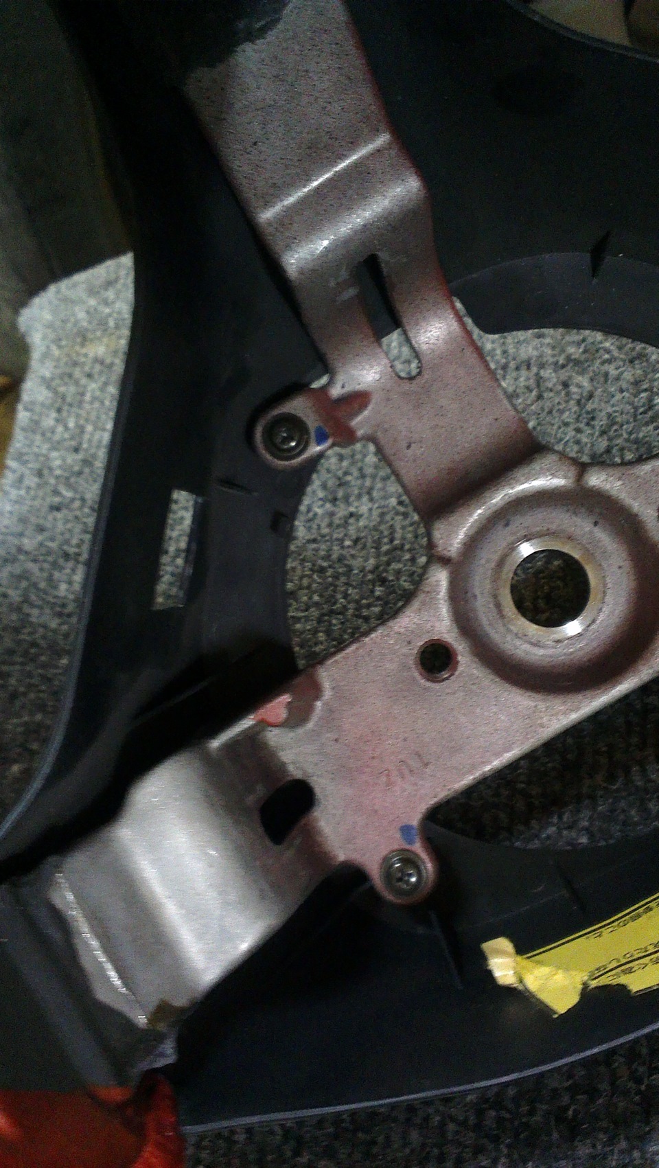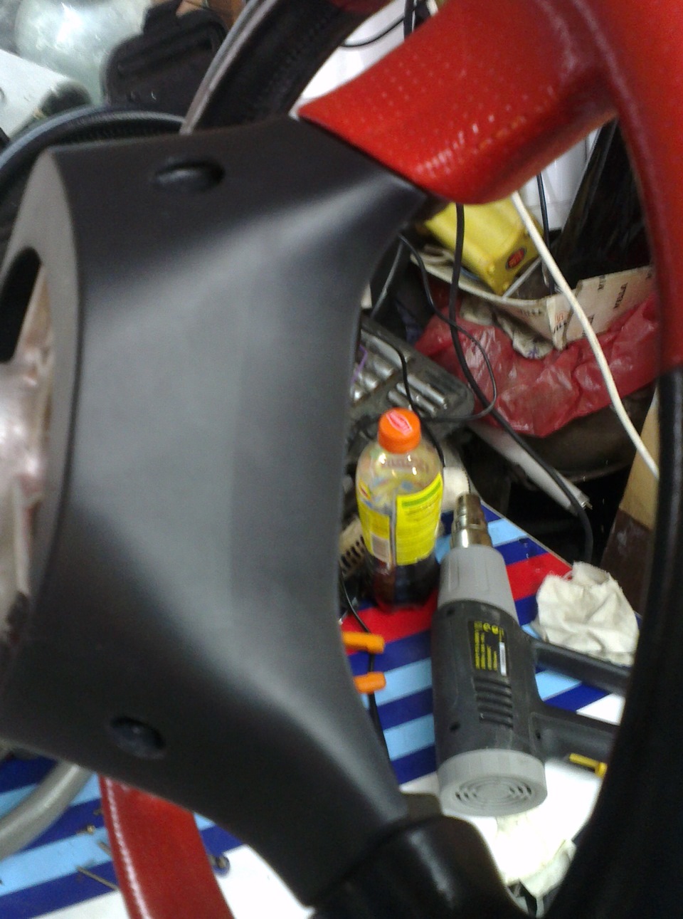 пилим глубже, . срезая часть крепления "чехла" и переставляя блок ручки между чехлом и железной конструкции руля.