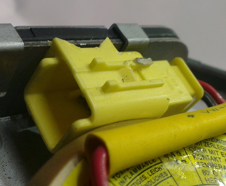 "фишка" детонатора подушки. на нем большая (как на старых тоётах, под 3 контакта, 1 из которых не используются) у нас уже маленькая(рестайловая 2х контактная)