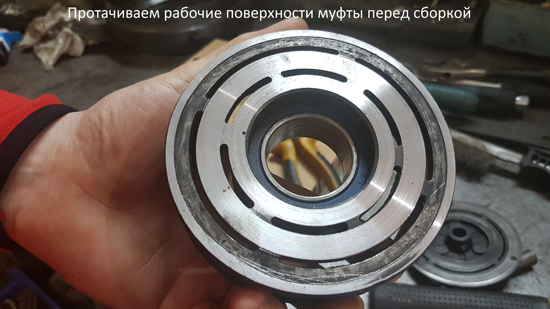 Протачиваем все рабочие области муфты для идеального прилегания при работе магнита.Хотя старый магнит еще был жив, меняем на донорский без повреждений.К сожалению его нет в продаже как отдельной позиции.