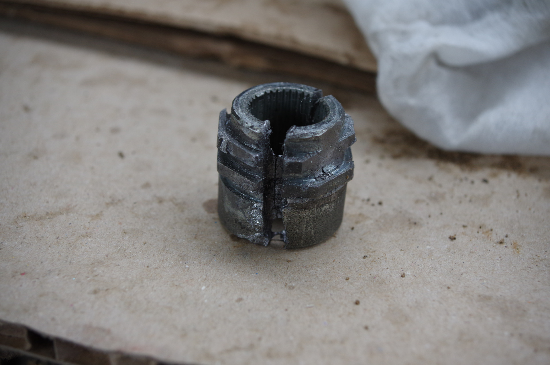 После того, как пропил готов — можно аккуратно "стукнуть" зубилом — втулка и треснет. Дальше можно снять пальцами.