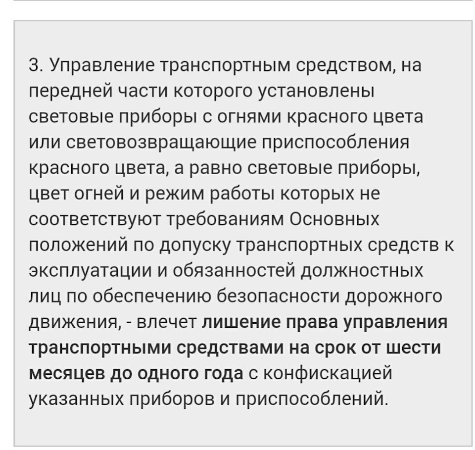 Так тут говорится про цвет огней и про режим работы. Тогда тех, кто ставит галоген с белым свечением, тоже ипать должны? У меня които вайт бим светят белым- это тоже преступление?