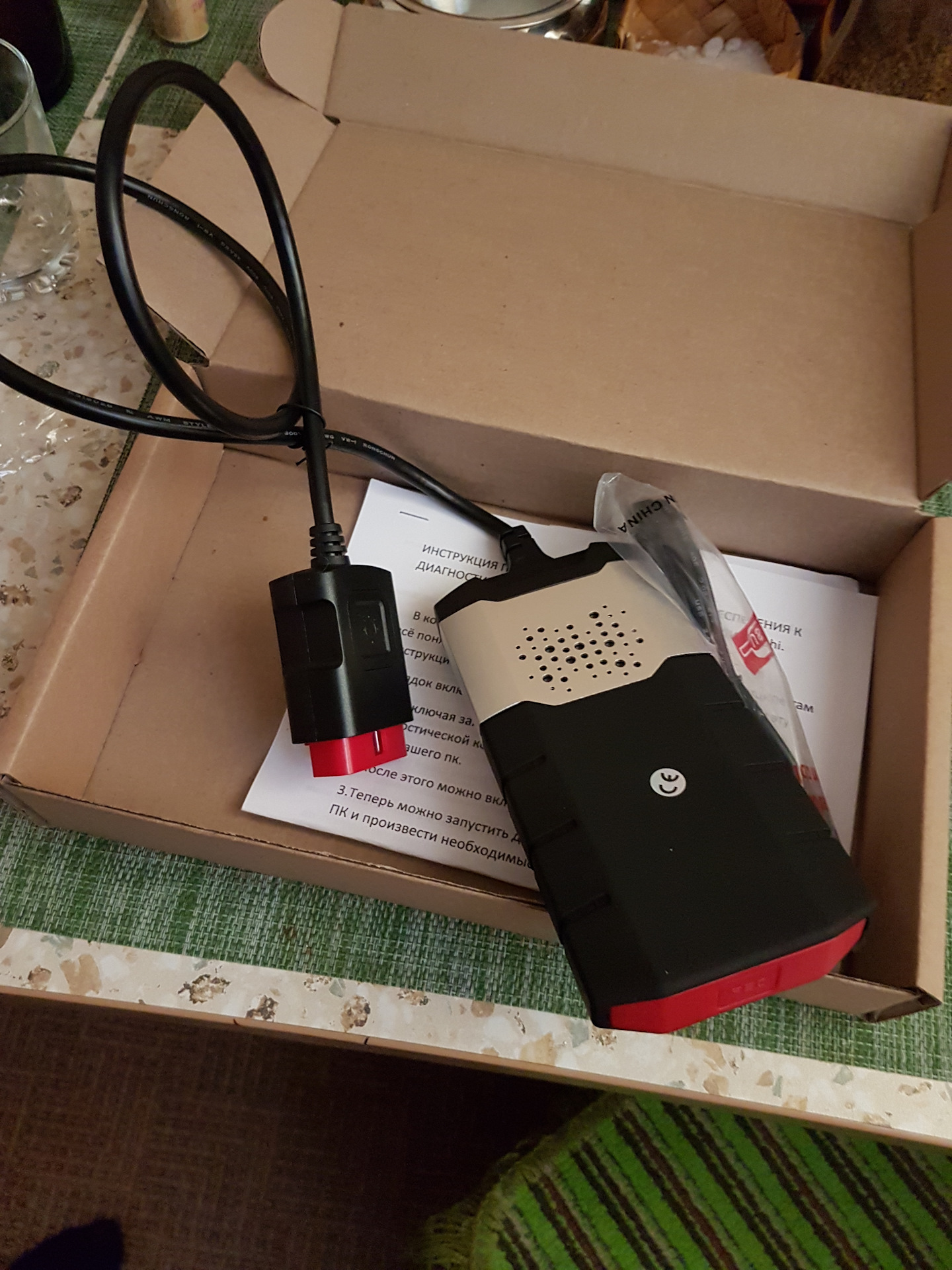 DELPHI DS150E (к сожалению я не сделал больше фоток), скажу сразу, для лачетти он не подходит и если вы не обладаете основами выше базовых в работе с компьютером, настроить ПО (а оно все ломаное), будет непросто (хотя в интернете есть куча инструкций, где почему-то пропущены мелкие шажки (если шарите и так поймете, если нет, зайдете в тупик)), лично мне понадобилось ~ 4 часа на установку, скачку, настройку и доведения до ума, в итоге: 1. — что я понял вещь шикарная, собрана очень хорошо, и как-то не похожа на китай и все шнурки добротные 2. — в моем отсутствовал "блутуз", что-бы это понять несмотря на наклейки, я потратил час — полтора. 3. — если вы не умеете запускать и работать с "виртуальной машиной windows", мучений будет много.