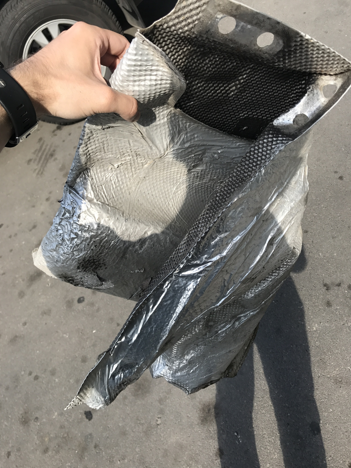 Купили теплоотражатель, как вы знаете эти вещи устанавливаются в тех местах где идет сильный нагрев нап: рядом с коллектором, взадни к глушителю и по центру где выхлоп проходит .