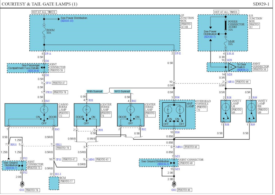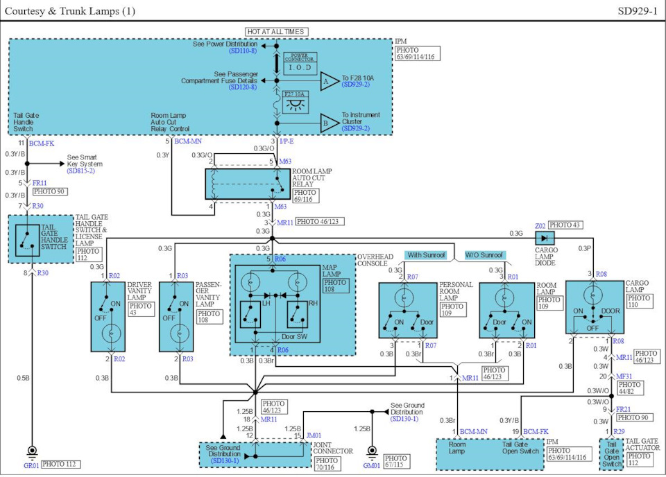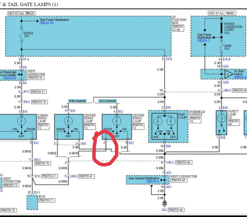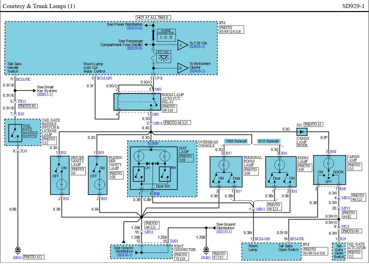 Добрый день помогите пожалуйста найти схему проводки которая отвечает за плафоны в салоне подаёт питание на часы с предохранителя room lp. Перегорает этот предохранитель даже не знаю с чего начать лампочки все проверил короткого замыкания нет Я так подозреваю что там какой-то блок управления стоит и что-то с ним но как на него выйти не знаю не могу найти