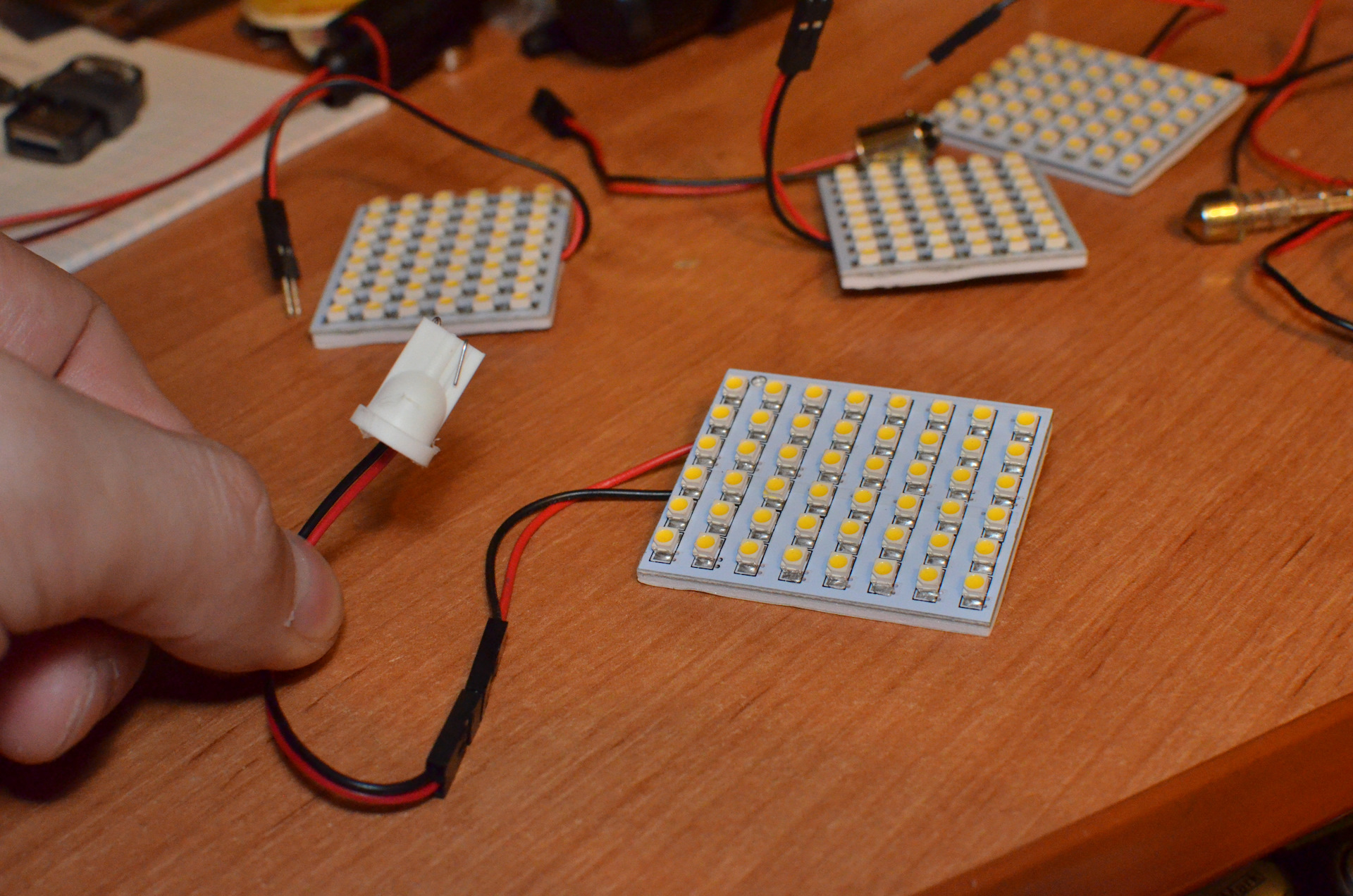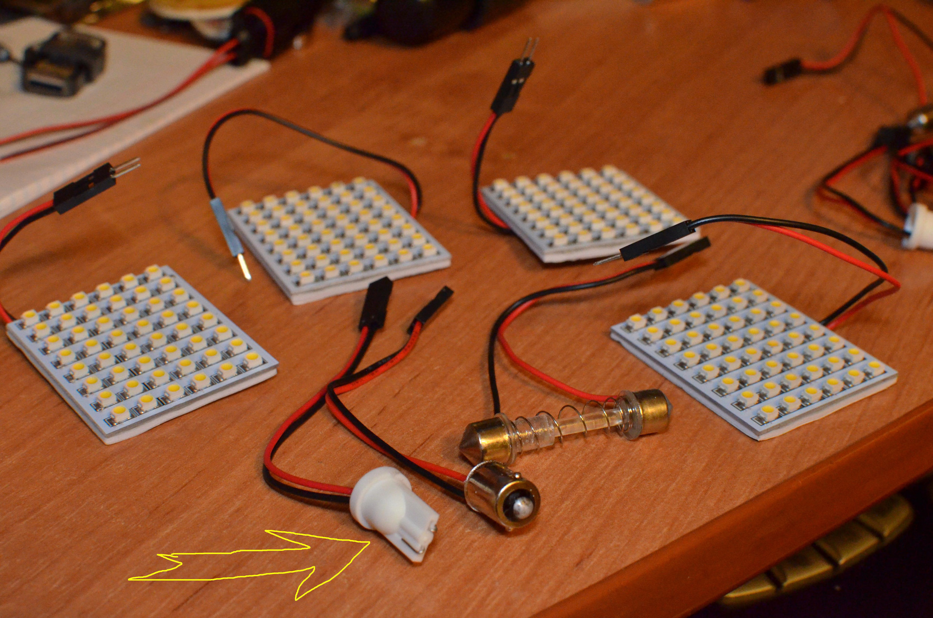 Так же по примеру уважаемого tucsoff приобрёл на али светодиодные панельки в передний плафон освещения (100р за шт):