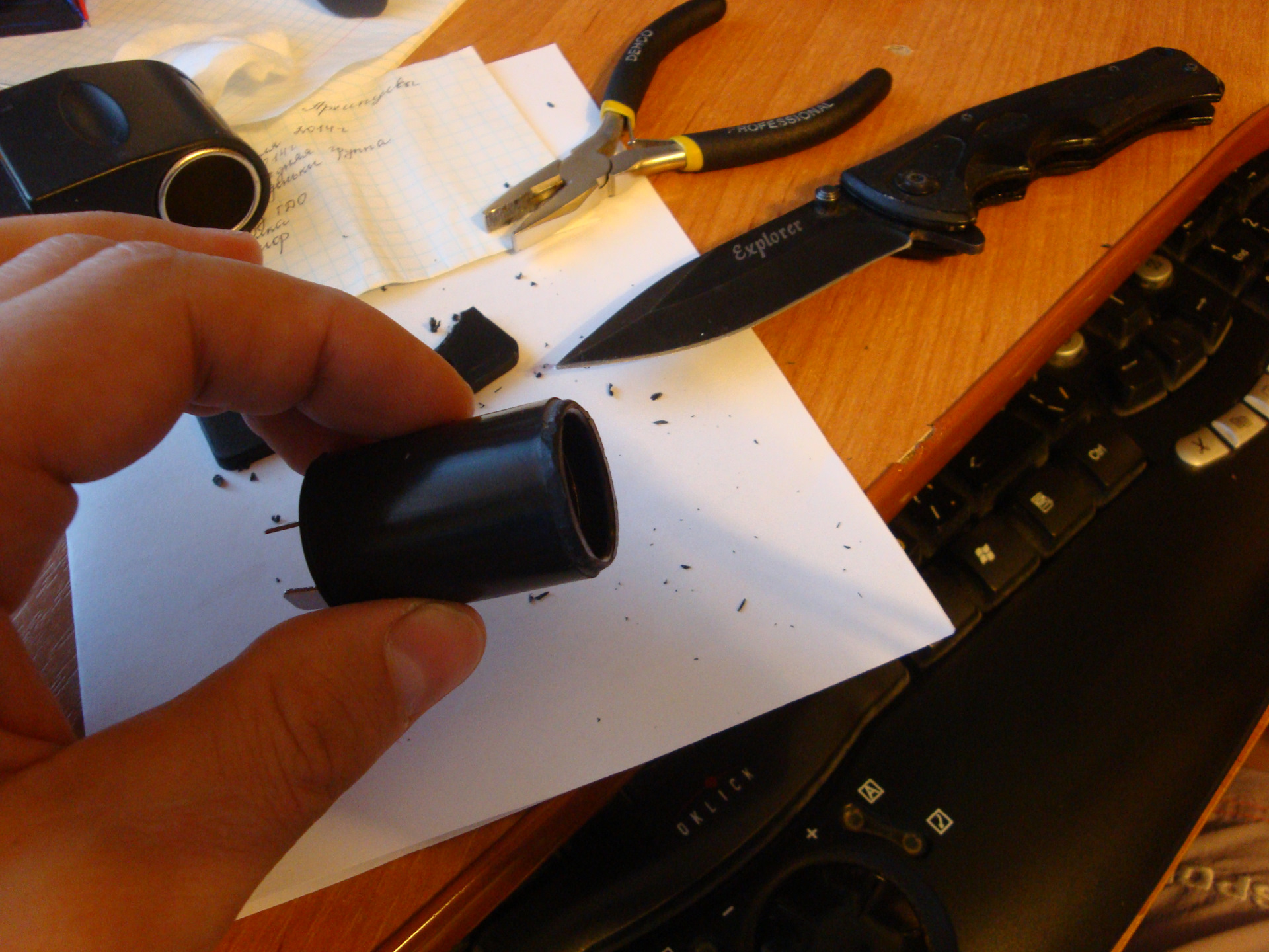 Тогда применяю новый план: для уменьшения объёма вместо штатного штекера питания применяю обычный держатель предохранителя.