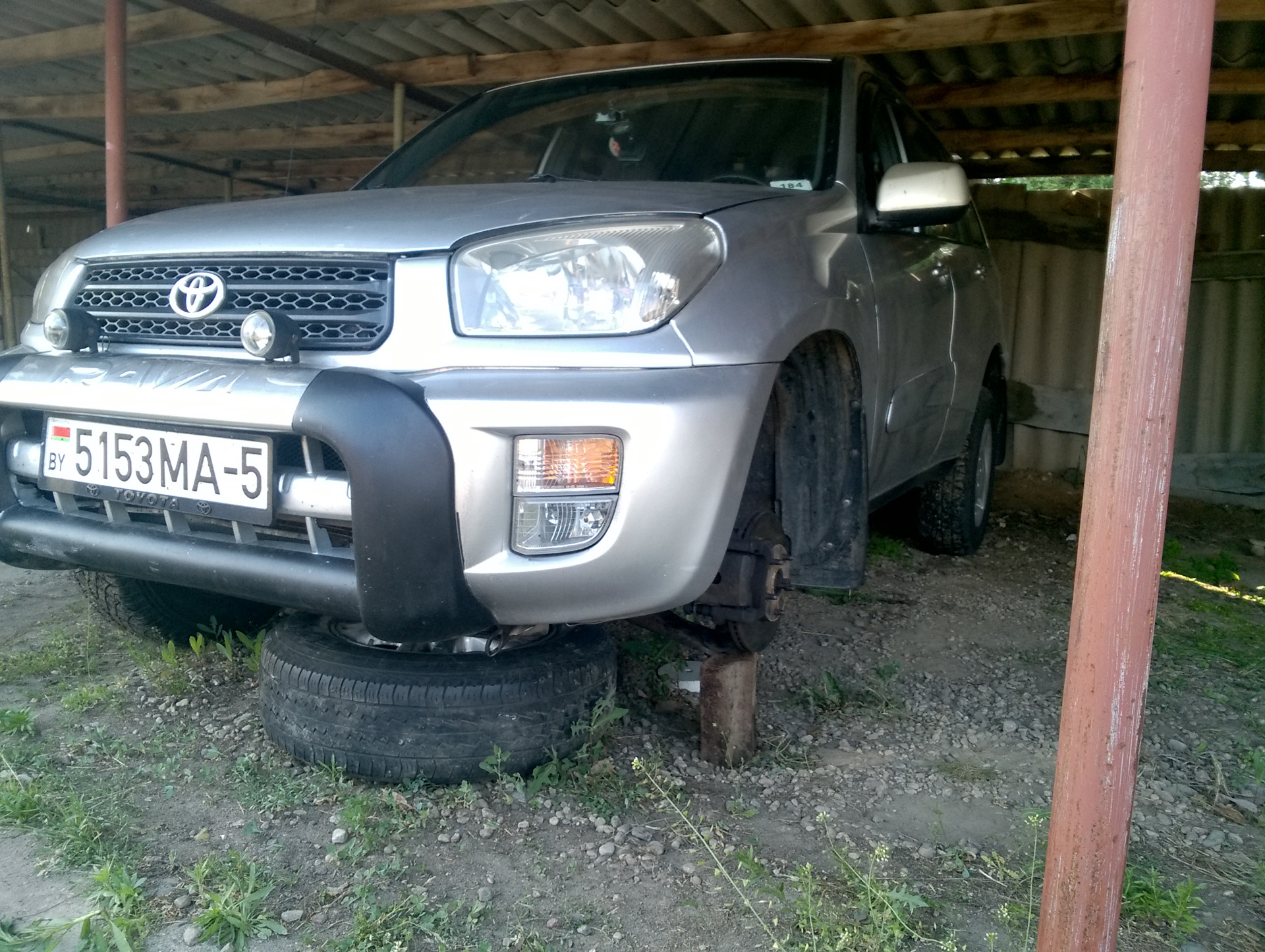 Замену делал на закрытой стоянке, поэтому мог позволить оставить машину, подложив случайно найденный кусок рельсы (!) под рычаг и сходить в магазин за струбциной, которая с лёгкостью помогла мне затолкать на место тормозной поршень, и процесс замены колодок заметно ускорился:)
