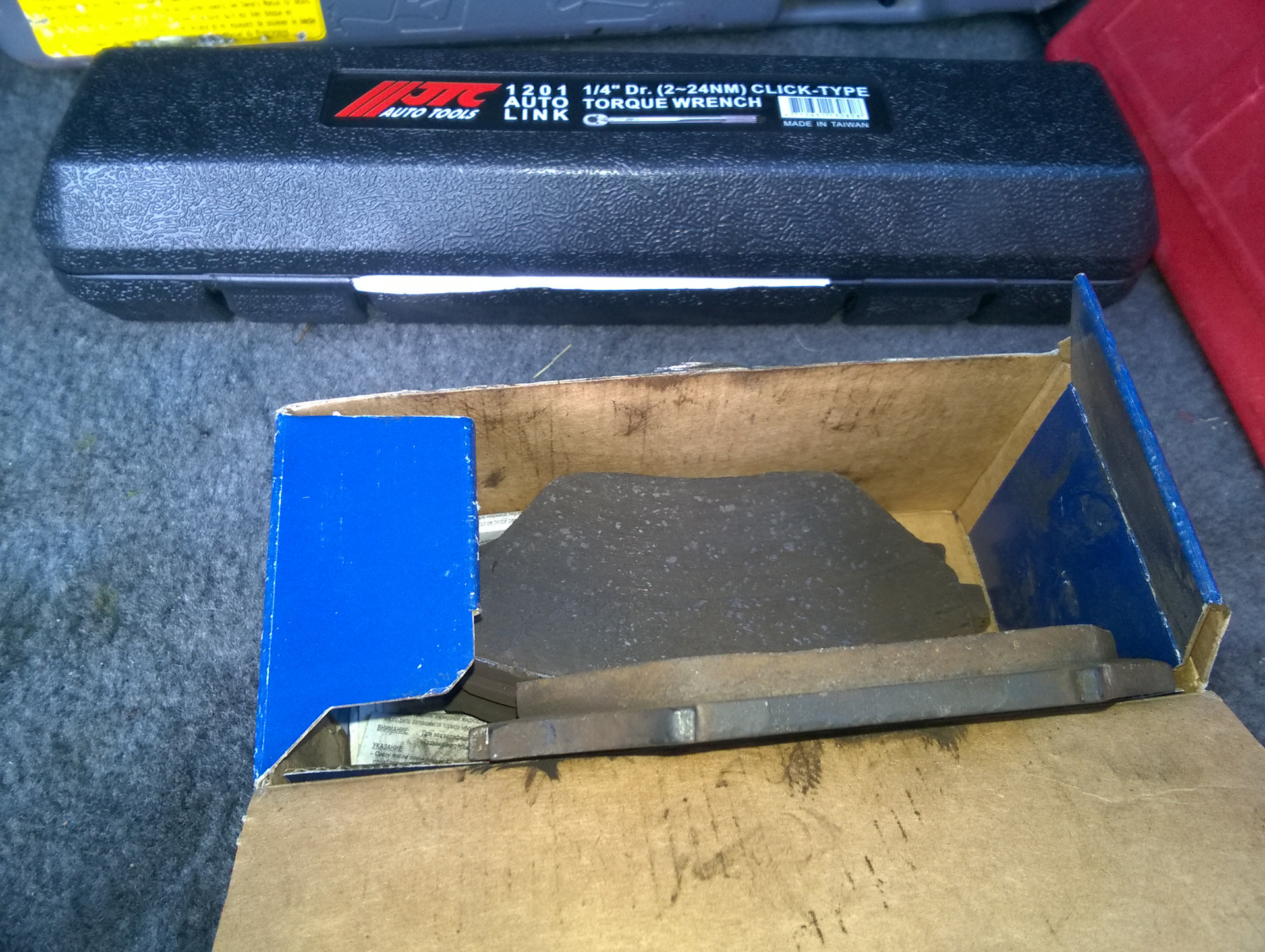 Так как это всё делал впервые — столкнулся с трудностями. До этого смотрел пару видео по замене колодок — там ничего не упомянули про заталкивание тормозного поршня внутрь цилиндра, а руками этого сделать не удавалось. При этом, после некоторых экспериментов, не удавалось установить и старую колодку, поршень был сильно вытолкнут наружу.